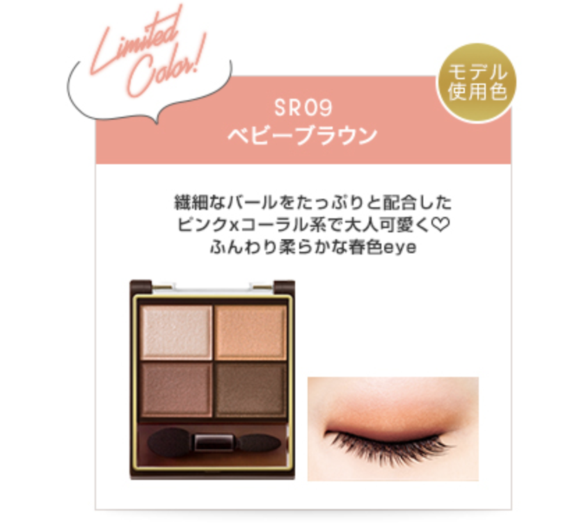 話題度最高的春夏彩妝無非就是「裸色深邃眼影」出新色號了!以自然好上手聞名,無論是粉值、顯色度與持久度都不輸專櫃的品質,被台日網友譽高CP直開架眼影,限定新色號#SR09 Baby Brown,結合粉紅、珊瑚橘與必備大地色,完美呼應春天粉嫩氣息,想要溫柔妝感或是深邃迷人,一盤就可以做到!微甜又有成熟韻味,不收怎麼行~