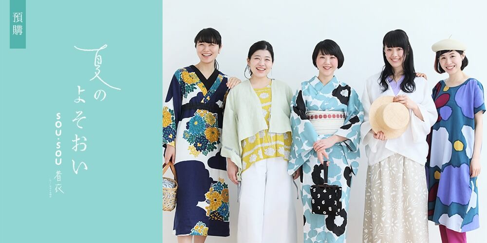 以「創造全新的日本文化」為理念的SOU.SOU,是來自京都的品牌,設計的產品充滿日本風味,利用獨特的花紋表現四季風情。運用傳統的素材和純手工藝,製作各種產品,將傳統融入現代人生活。SOU.SOU設計以織品為核心,以各式花紋為底(花朵、植物、動物等圖紋),他們致力於將傳統文物改良為現代人喜愛的產品,例如帆布袋、木屐、和服、兩趾襪等等。現在也推出了一系列充滿夏日能量的現代和服裝,絕對潮絕對夠夏天!