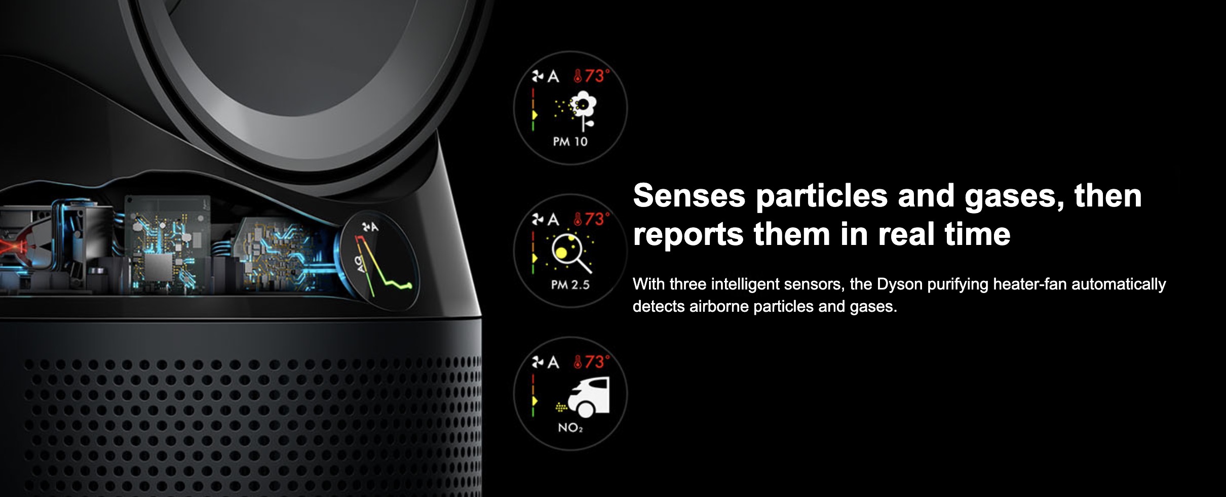 近年來空氣污染的問題越來越嚴重,就算是在室空氣品質也是相當重要的。「Dyson Pure Hot+Cool™ 三合一涼暖空氣清淨機」能自動感應空氣品質,捕捉超細懸浮微粒,並利用氣流倍增技術吹送清淨暖風,能同時徹底淨化室內空氣並溫暖全室。