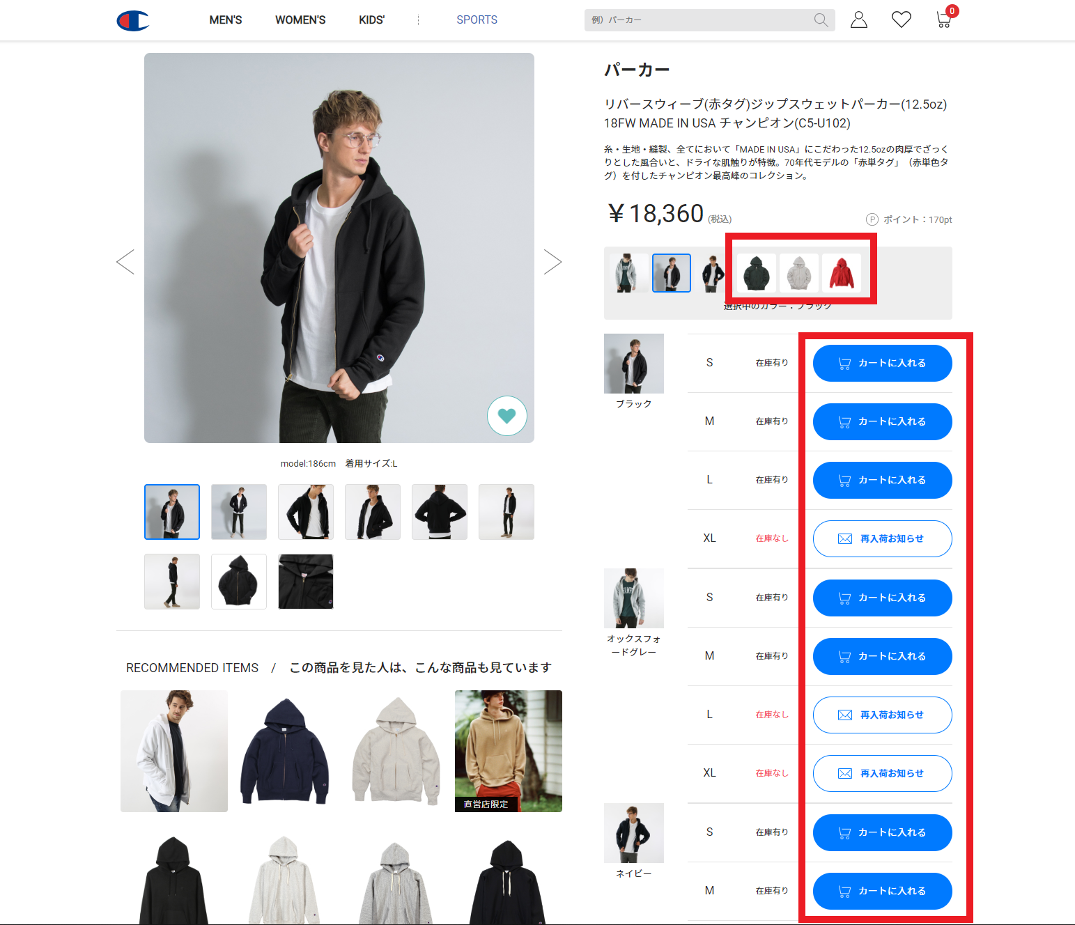 Step3. 如下圖,挑選喜愛的商品,選好顏色及尺寸後,加入購物車
