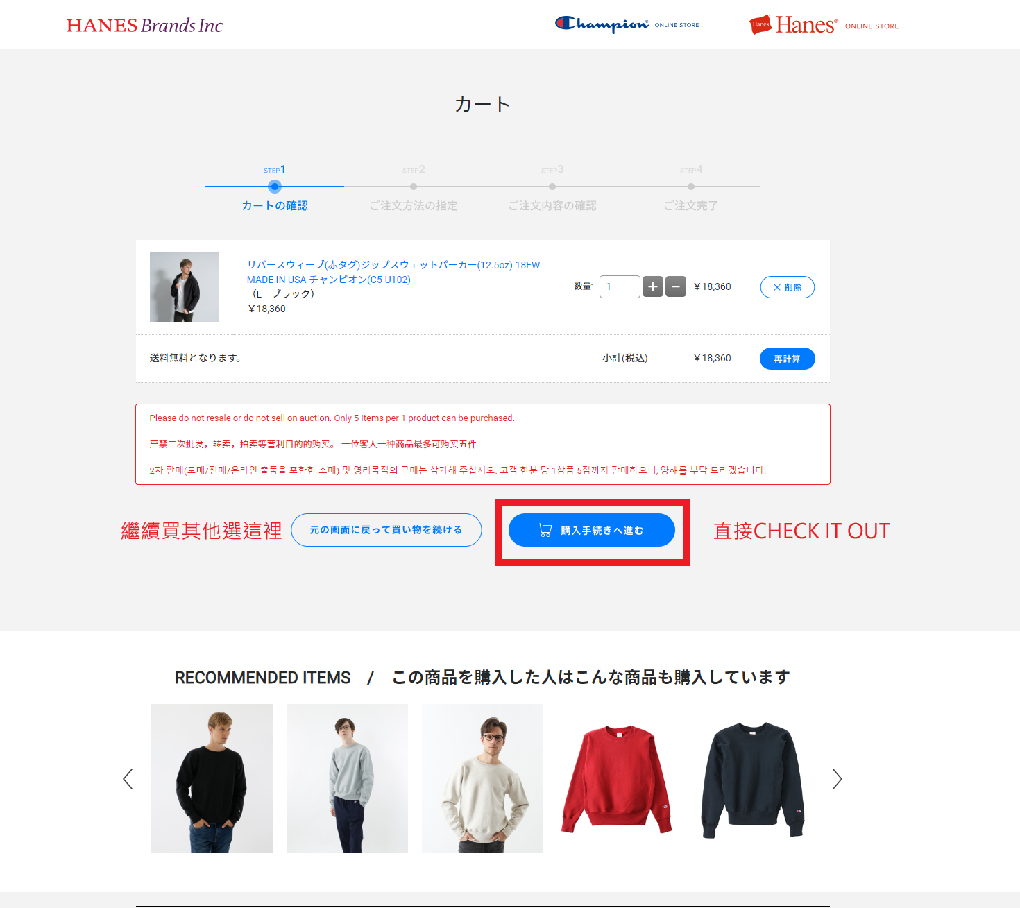 Step2. 到CHAMPION日本官網去盡情購物,還不是會員的人記得先註冊,這裡註冊需要你的BNS會員編號及倉庫資料哦!