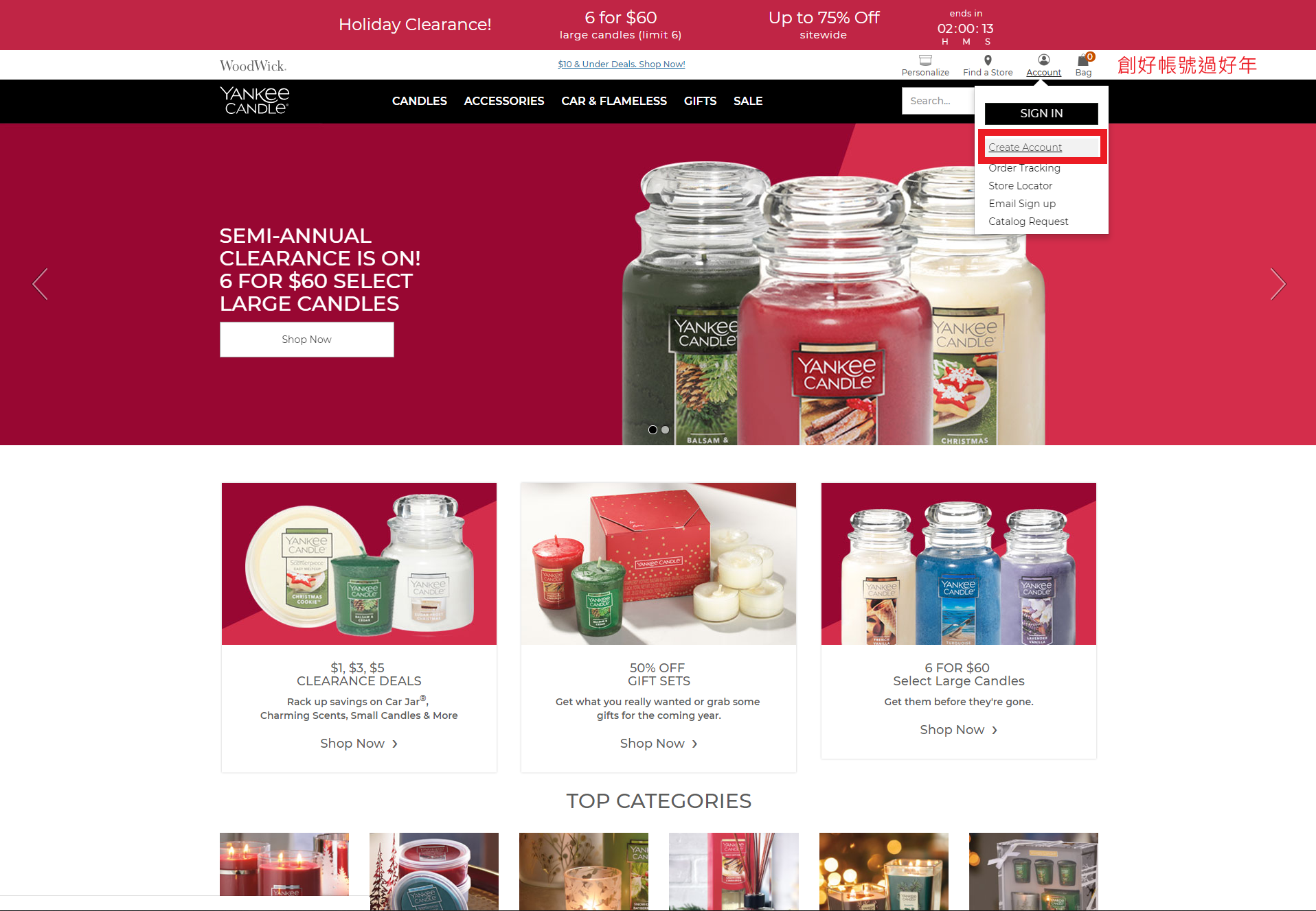 Step2. 到Yankee Candle官網去盡情購物,還不是會員的人記得先註冊。