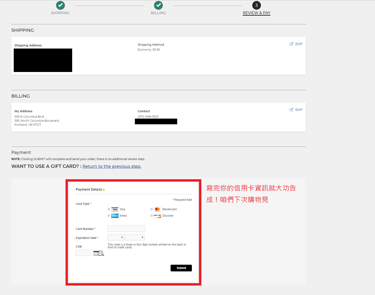 Step6. 選擇付款方式,填上帳單資訊,就大功告成囉!