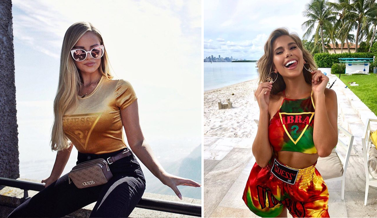 運動休閒風是GUESS最基本的造型,簡單的單品搭配歐美剪裁以及鮮豔色彩,成為街上潮流人士的愛牌之一。大LOGO與明顯的品牌名稱更是重點之一。除此之外連身洋裝更是有休閒也有正式,重點在於健康日常之間增添的性感,緊身設計顯出的身形讓造型不誇張卻依然引人注目。