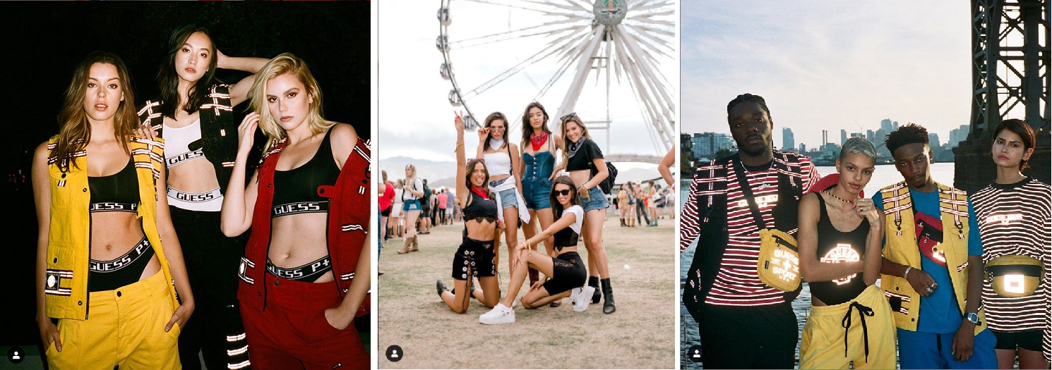 美國的知名品牌GUESS從緊身牛仔褲起家,至今已成為具有各種時尚單品的潮流品牌。GUESS代表著好奇的心,展現冒險、性感、與純粹的美國風格,品牌之初以美國西部的粗曠調性為主,以舒適自然為重點,後來隨著流行風潮延伸出更多簡約且都市感十足的設計。GUESS的招牌標誌是到三角與問號造型,秉持品牌理念中的好奇直至今日,充滿個人特色的率性風格受到大眾的喜愛。