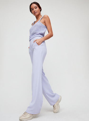 話說這件少女紫怎麼那麼好看!原本小編是不太喜歡紫色的衣服,但是紫色在本季瘋狂被時尚部落客燒,讓原本不是紫色愛好者的小編都愛上了!這款直筒喇叭褲是由日本布料製成,沒有過多的花色與車線,因此非常修飾腿部線條,再加上是喇叭褲的款式,對於小腿比較粗壯的人絕對是必敗款!