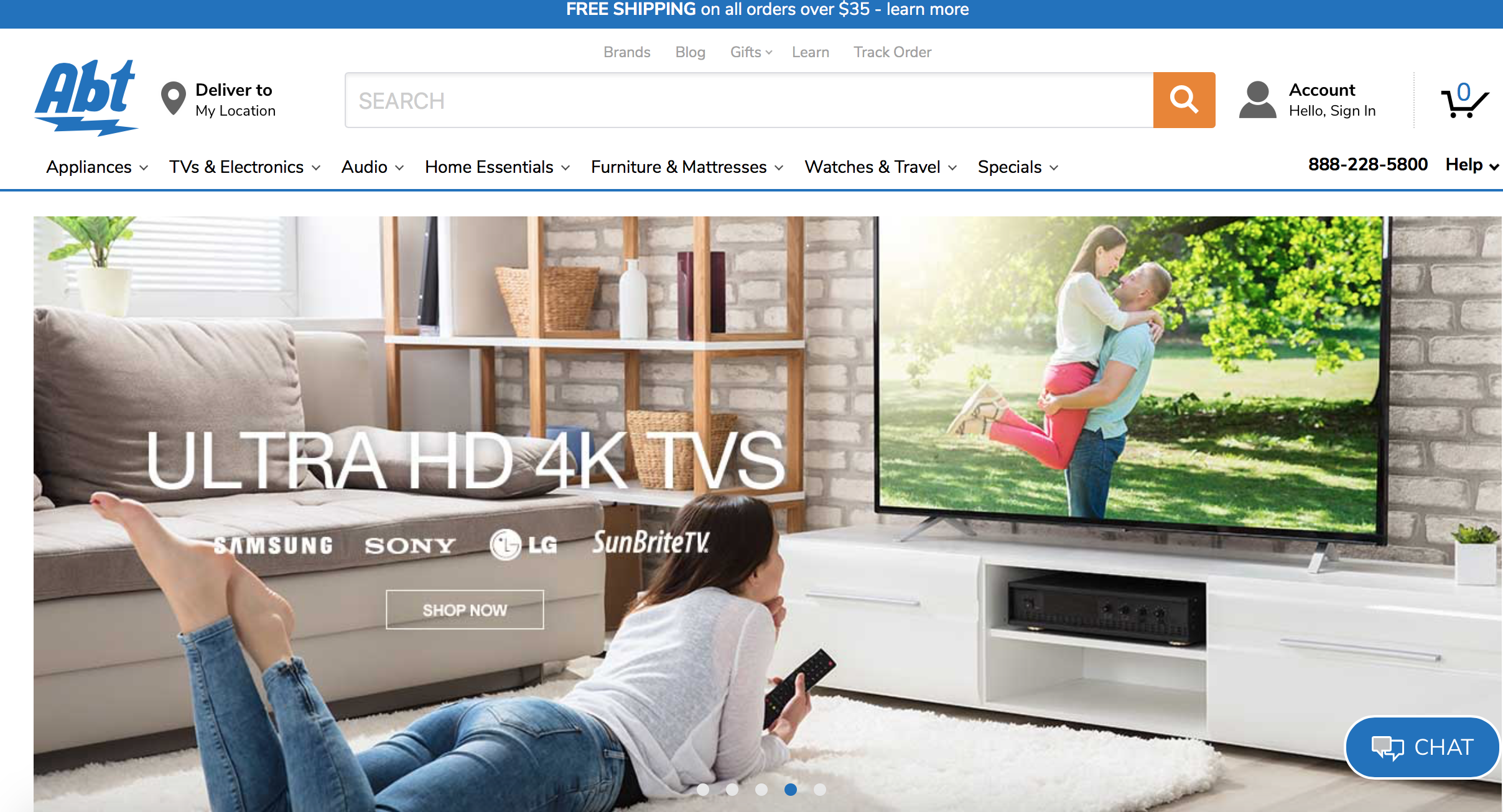 Abt 算是相當傳奇的美國老牌,從家庭式經營薄利多銷屢創佳績,發展到全美最大的單一電器零售店,現在更發展成美國數一數二的電子產品銷售商。網站商品包含數位家電、平板電腦、手機產品和家俱等等都有販售,商品種類也相當齊全,只要購物超過 $35美金就能享有免運服務~
