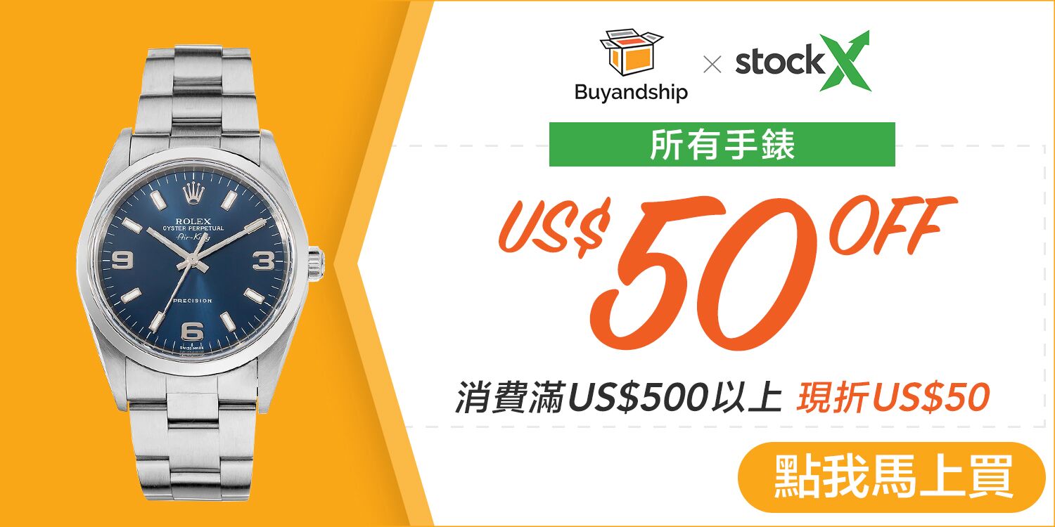 在Stock X購買精緻的錶款們已經夠優惠了,現在還有個好康大放送!讓愛錶的你們省上加省!凡是消費滿US$500,即可現省US$50!!!還不趕緊到Stock X把遲遲下不了手的手錶帶回家!優惠不等人,錯過就沒囉!