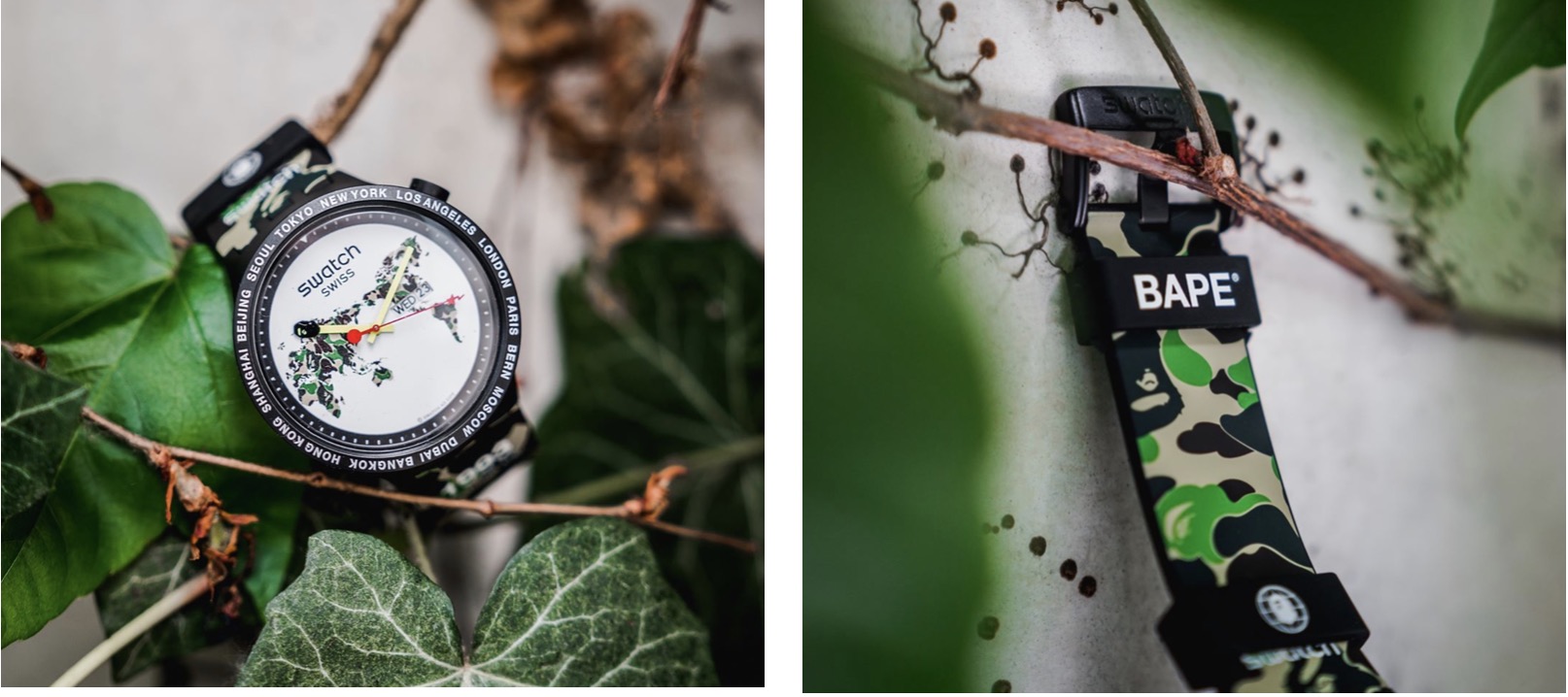 BIG BOLD錶款即是SWATCH大膽的創舉,找來潮流傳奇指標元老級品牌「A BATHING APE」合作,以其超高辨識度的獨特猿人LOGO及迷彩圖騰設計備受矚目,以寬幅達47mm的錶帶展演運動時尚風,讓新型態錶款進行一場全新的潮流變革!
