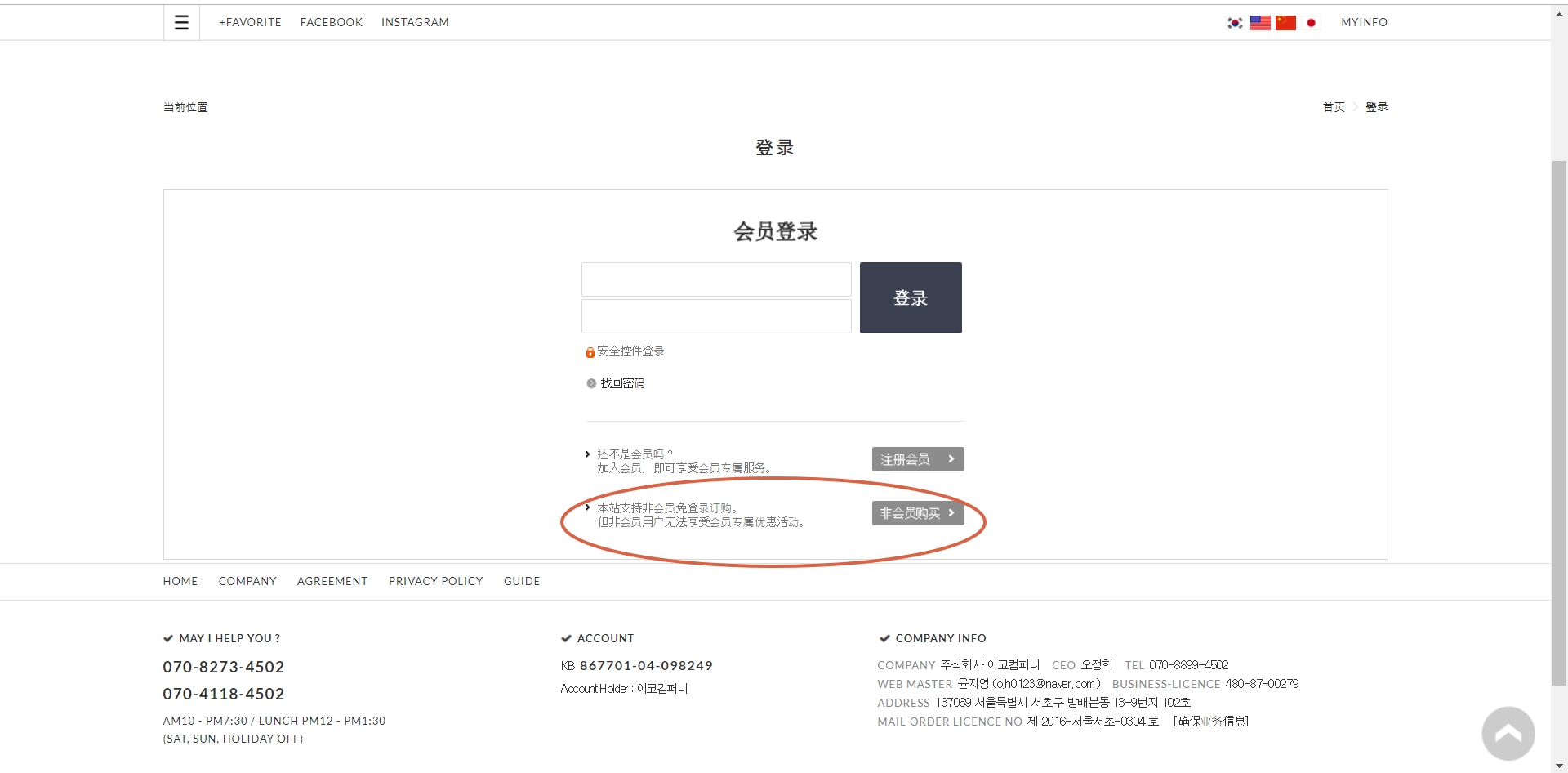 Step4. 出現登入頁面,如下圖,妳可以選擇註冊會員或是最下方圈起的「非會員訂單」,小編選的是後者喔