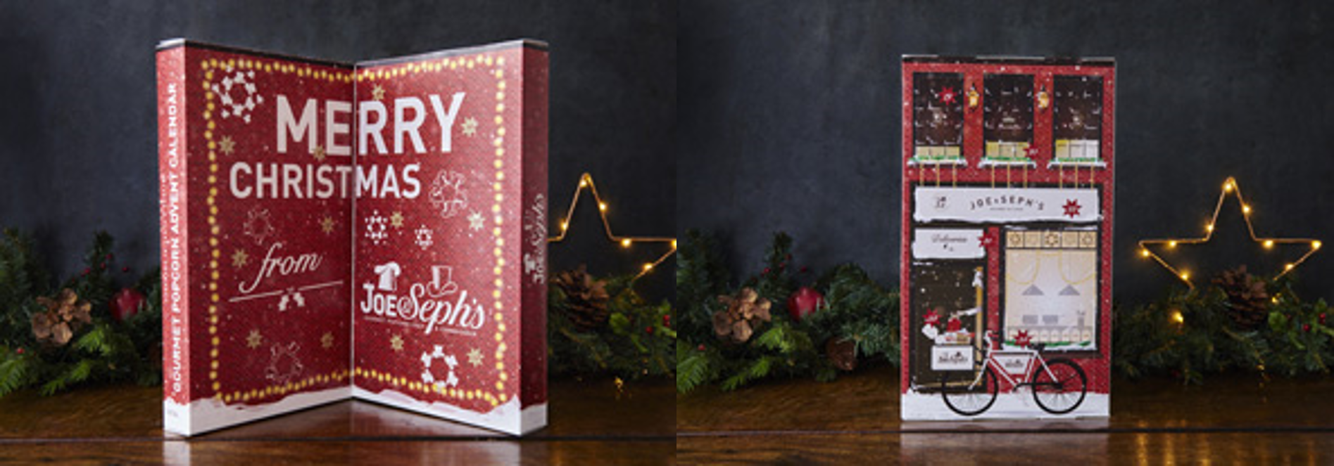 愛吃爆米花卻還沒吃過Joe & Seph’s,一定要買來嚐嚐,每天都有不同的驚喜 !日曆被描繪他們店面在維多利亞時代的店面積雪,日曆像一個巨大的聖誕節故事書一樣打開。售價£25,在24個門的每一個後面都有小包的爆米花,共有12種不同的獨特口味喔~