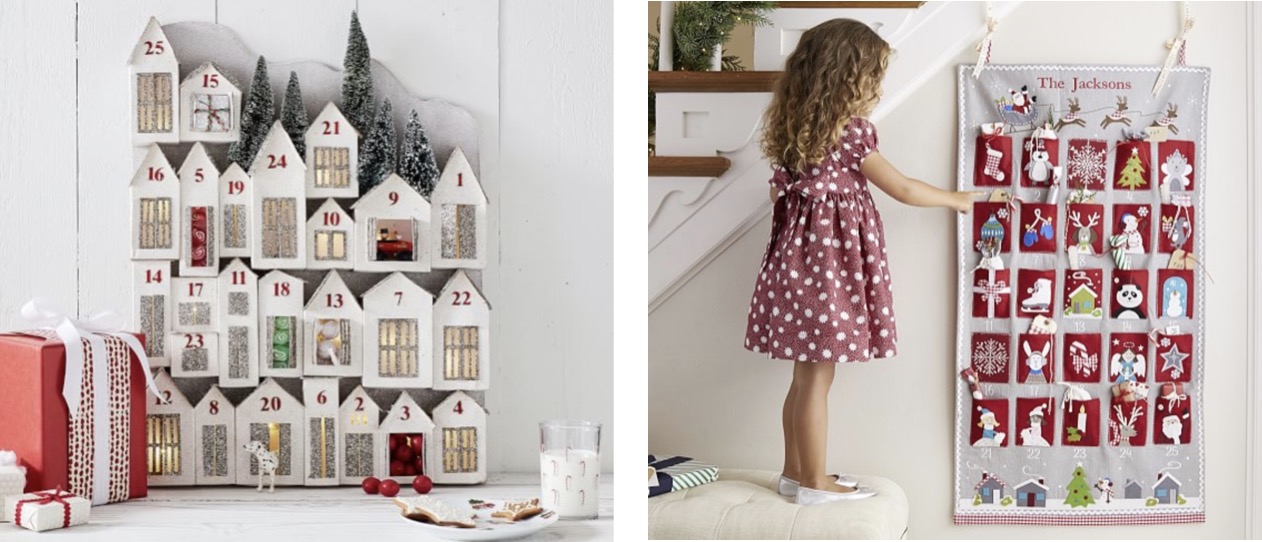 用來倒數計算聖誕節來臨的日曆起源於19世紀德國,起初德國教徒們為了和孩子一起倒數,在牆上掛24張圖片,讓家中的小朋友從12月的第一天開始,每天拿掉一張圖片一直到24號,以虔誠喜悅的心情迎接耶穌基督降生。後來演變成以紙盒製成月曆,以24個分隔開的小格子對應著24天,存放著聖經的章節或引文,每日可以開啟一個小格子取出裡面的籤詩,用神聖的文字來準備與家人團圓過節。