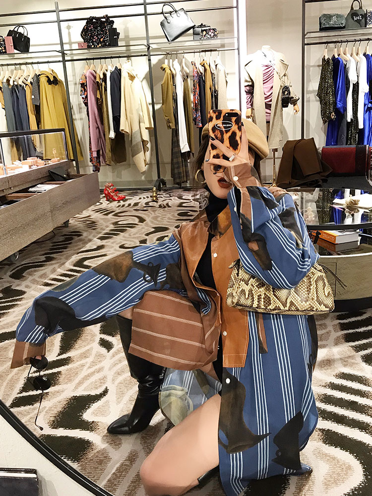 微浮誇的華麗店鋪IUIU在一片極簡歐美風之間展現獨有特色,價格雖偏中高但色調質感卻也是極為突出,每件單品皆充滿各種小細節和小巧思,不會過於難以駕馭的尺度,但撐起來完全就是女強人氣勢破表~