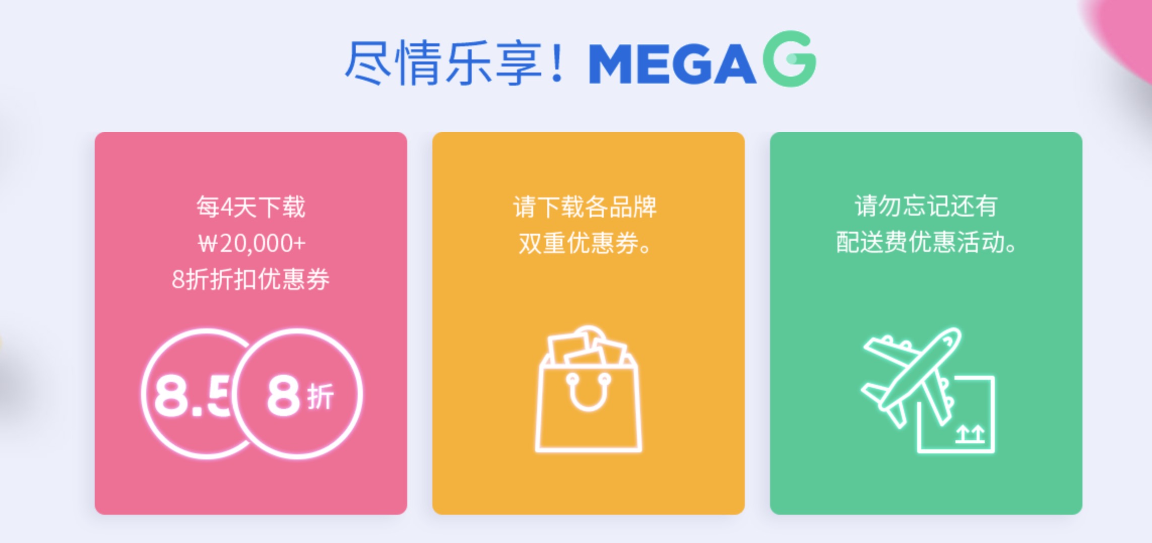 在分類裡可以找到熱銷商家、各國熱賣商品,第一次使用也不用擔心,平台還幫你整理了熱銷商品排行榜!雙 11 活動 「Mega G」太多好康,除了記得要領取每月折價券,運氣好可以抽到5折折價券(最高折1W韓元),每張優惠券有不同的使用方法(例如”購買滿15,000圜以上可獲10%折扣,最大減5000圜”等等),使用前記得看清楚說明喔!還要領取Mega G優惠卷,滿額八折喔!!
