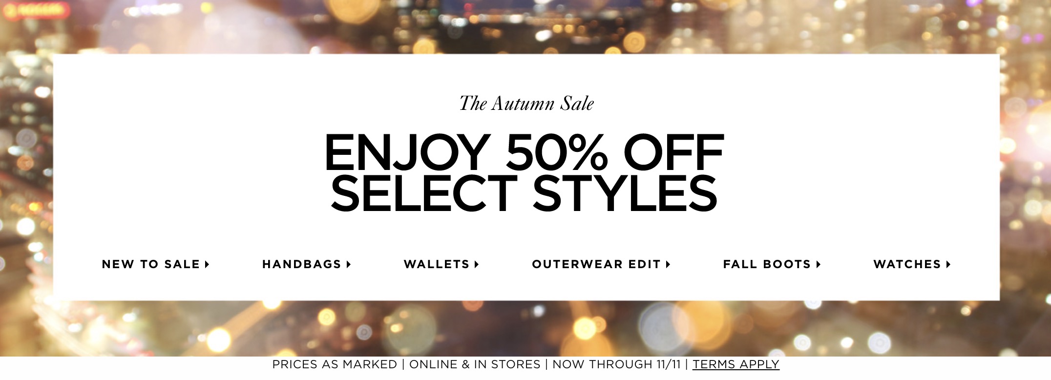Michael Kors美國官網現在1111有官方精選款式最高折扣五折,除了包包之外,打折品項還包含鞋子、服飾、男裝跟皮夾喔!聰明購物的女孩都知道,不管怎麼比,趁美國官網折扣季購入,絕對是最划算呀!優惠只到美國時間11/11喔~