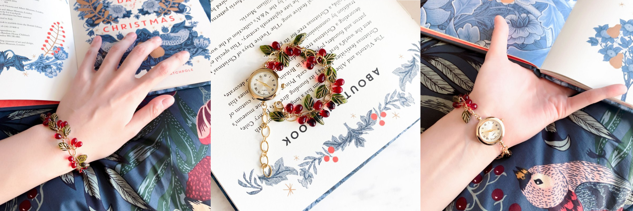 這款精緻的綠葉手環搭配小巧可愛的手錶,戴在手上輕鬆為自己的優雅品味加上完美點綴,這款來自於日本的 Sugar Valentine 設計名店,裡面收藏著許多優雅精美的飾品,像是手環、項鍊。想提升自己的氣質,記得到這間店走走!