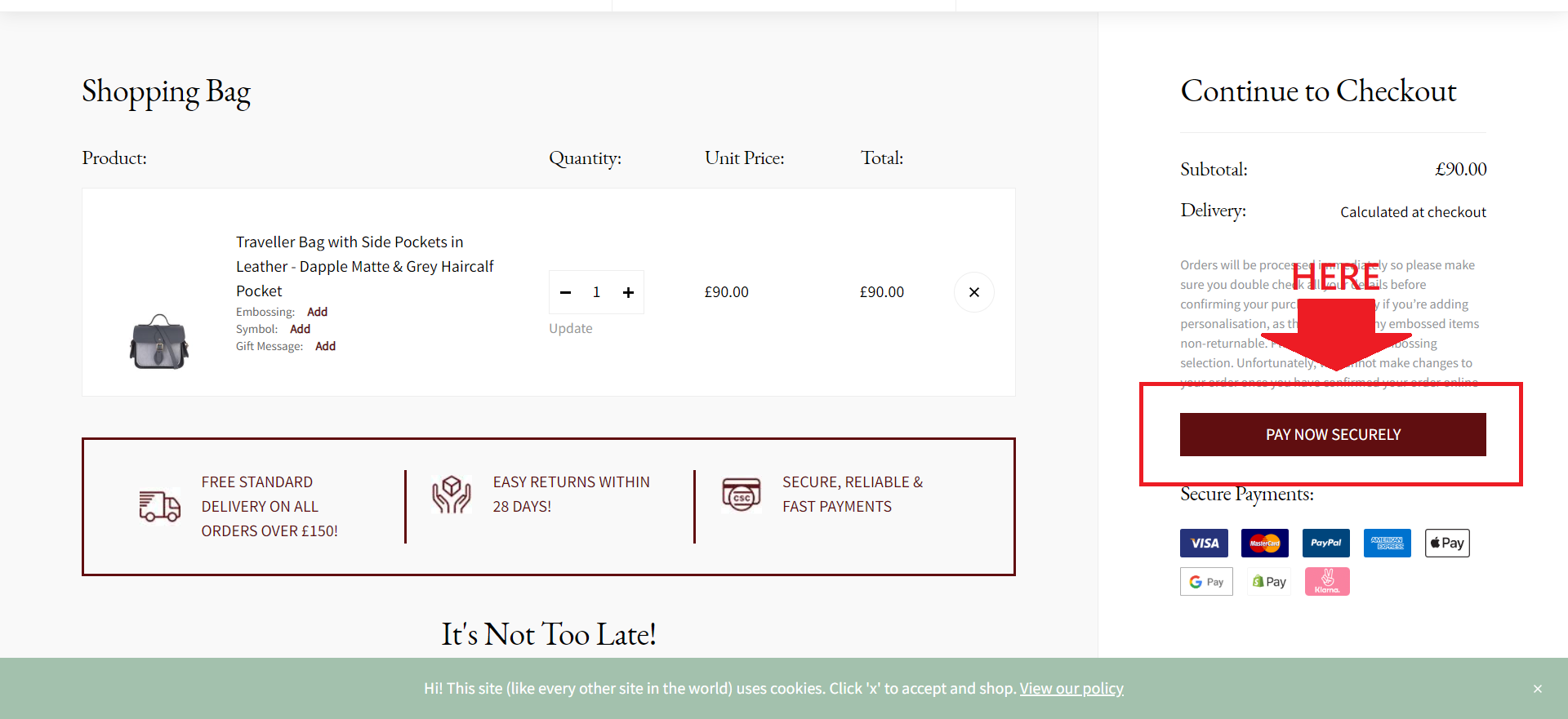 The Cambridge Satchel Company更貼心地提供客製化服務,可以在包包上以鋼印或是噴色的方式,鑲上自己的名字,噴色有金、銀、黑三色可選,費用一個字是7鎊,但是印上品牌logo腳踏車是免費的喔! 另外也提供免費的修改背帶長度跟打洞,因為亞洲女孩身材大都相對嬌小,建議一定要改背帶。