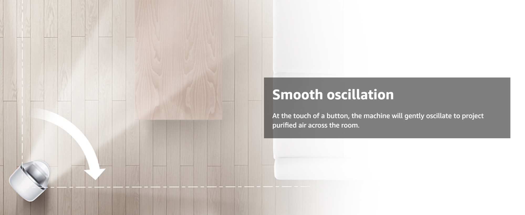 HP04適合在較大的房間或是客廳使用,可擺動45°至350°度,大範圍地擺動加上空氣倍增技術,讓乾淨空氣及冷暖風順利吹向全室。