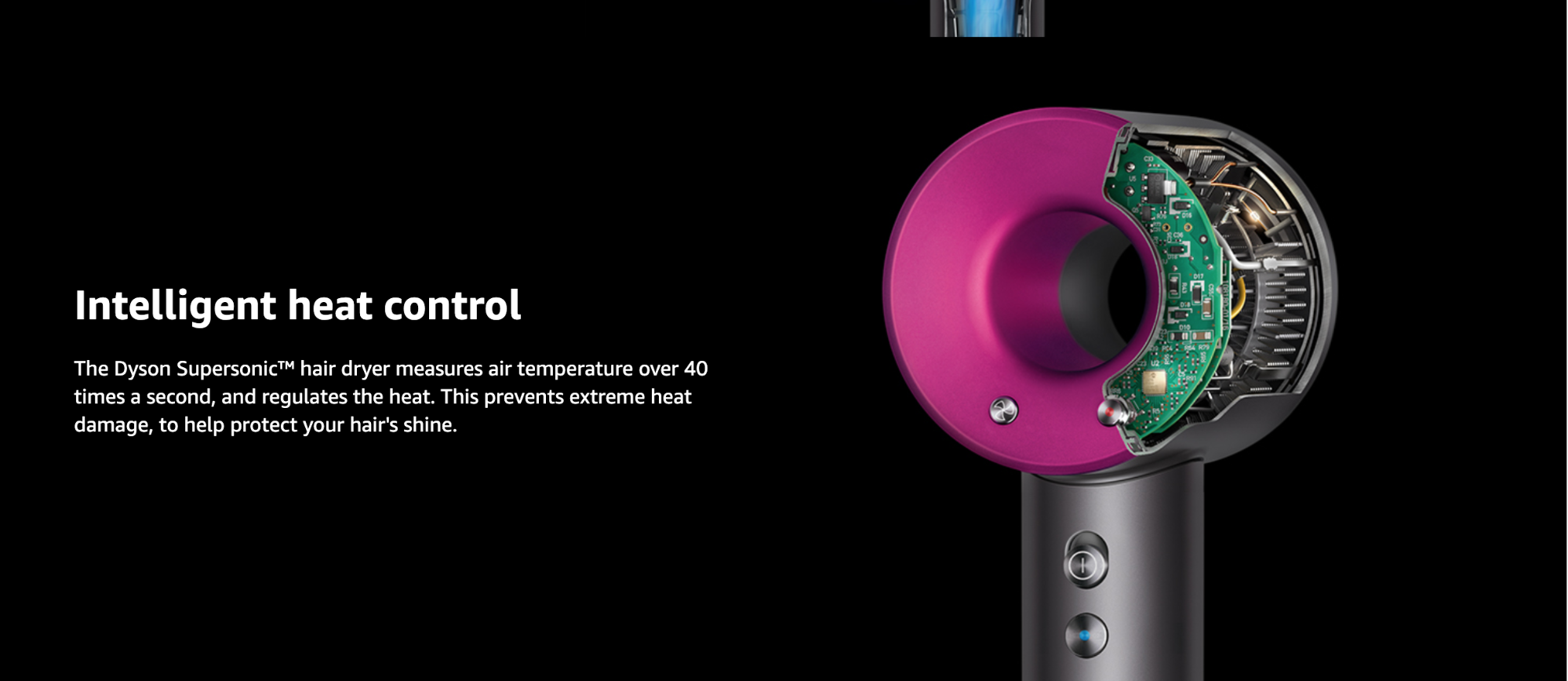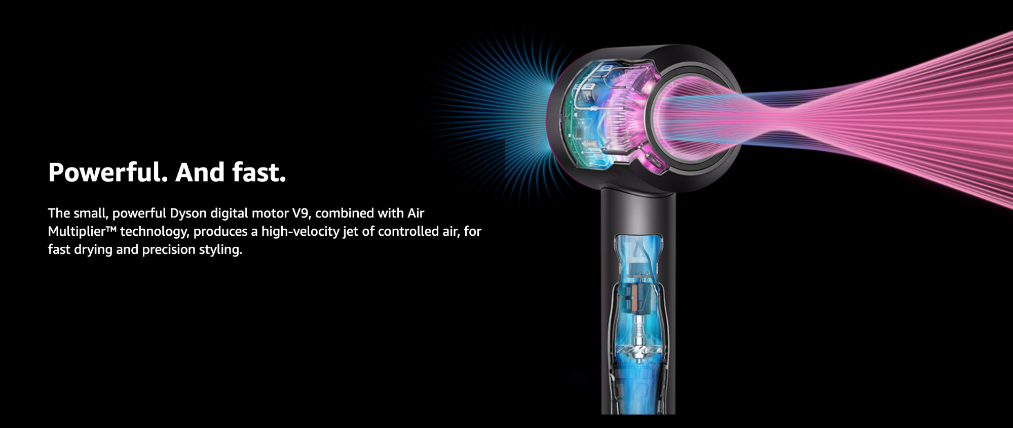 它的「氣流倍增技術」把氣流加強,產生受控、高速的噴射的空氣,還有3段式速度控制、4段加熱控制(100°C/80°C/60°C/28°C)將頭髮快速吹乾,卻又不傷髮質!