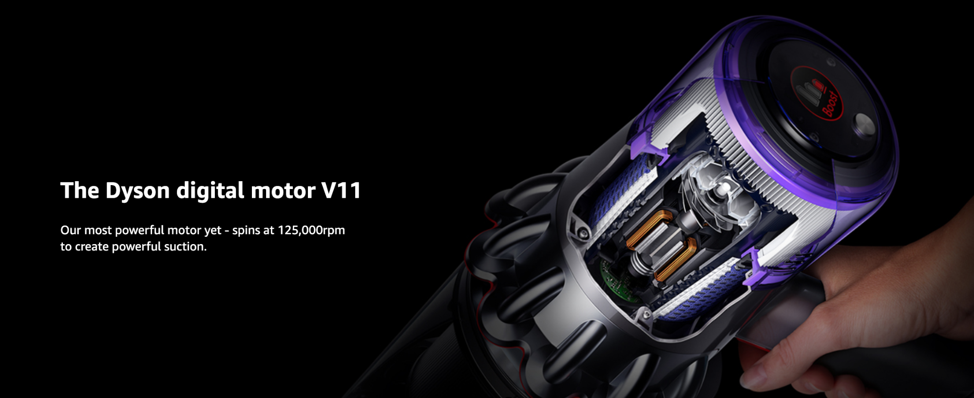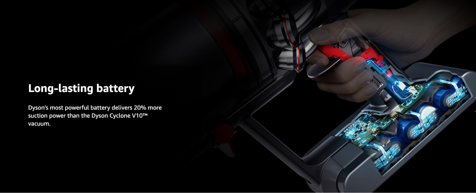 Dyson有史以來最強大的數位馬達,超高轉數帶來強大吸力,比V10還強勁20%!新增加的降噪功能,就算晚上打掃也不怕吵到人。