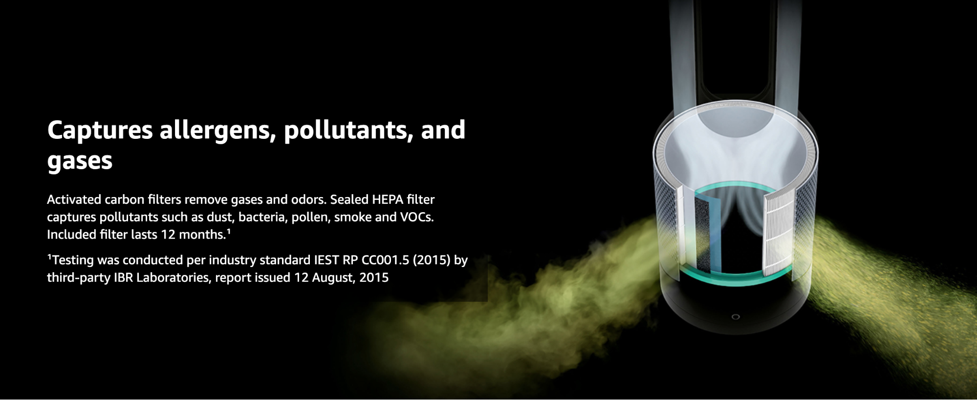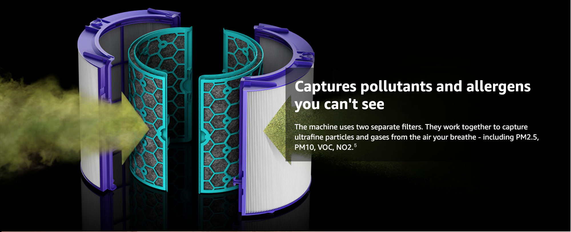 具備兩個單獨的過濾器: 封閉式HEPA濾網和活性碳濾網,能有效淨化99.95%小至PM0.1的懸浮微粒,例如過敏原和污染物以及過濾有害物體。