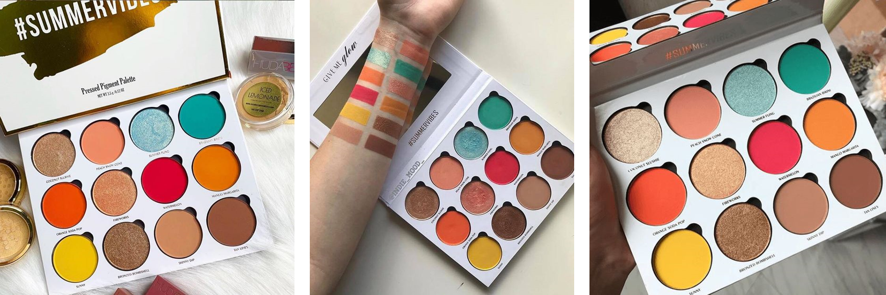 喜歡繽紛色彩妝容的女孩們一定不能不知道give me glow!看到馬上就被燒的體無完膚啦!!give me glow最有名的眼影盤非Summer Vibes莫屬啦~看到這個色彩鮮艷眼影盤實在好喜歡呀!看看上面這盤的配色,是不是超級活潑可愛!而且顯色度真的沒話說,記得下手不要太重,免得變成人體調色盤呀!