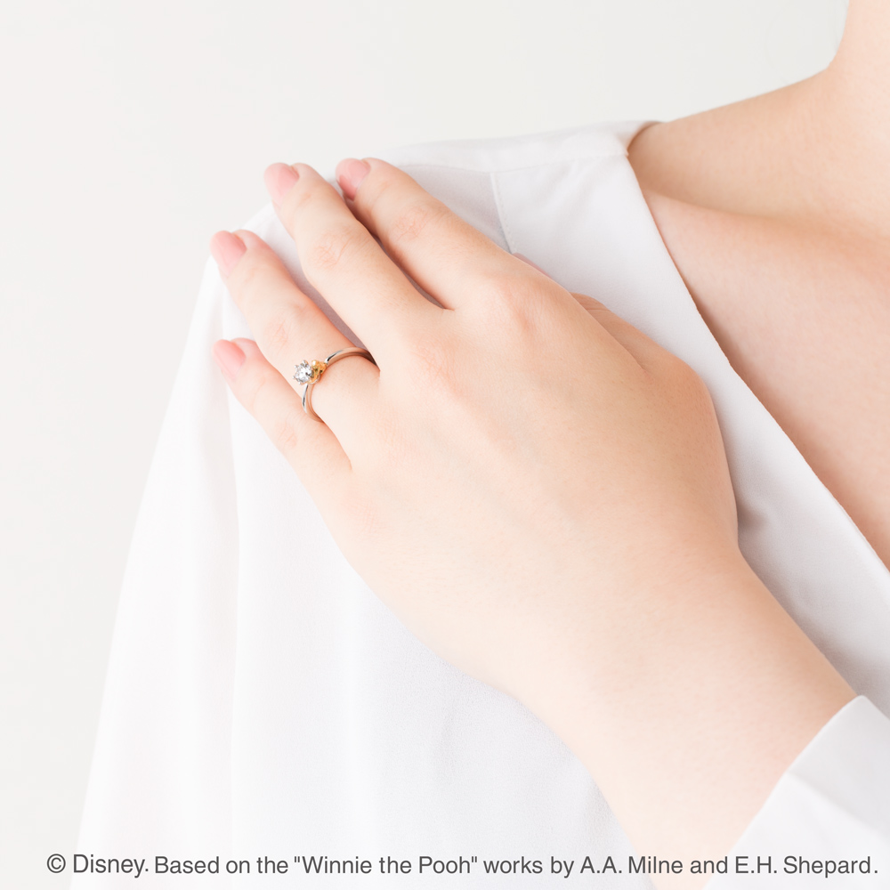 接下來這個系列是以維尼最愛的蜂蜜做造型,訂婚戒是維尼抱著蜂蜜罐,而在蜂蜜罐中的是閃耀的鑽石,你們的愛情就像這蜂蜜罐中的蜂蜜一樣,甜蜜得令人愛不釋手,而就像維尼守護他鍾愛的蜂蜜一般,你們也能守護你們的愛情與婚姻 !