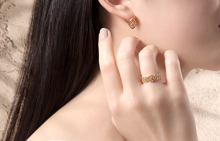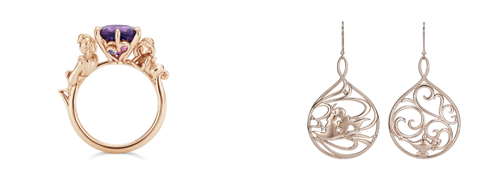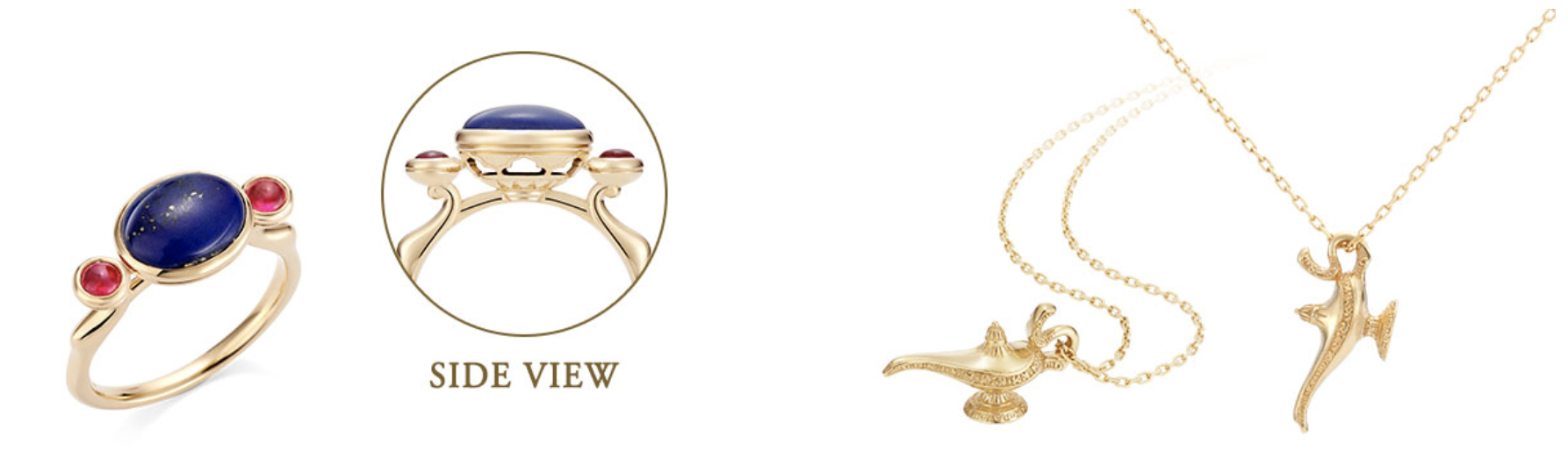 阿拉丁系列商品的細節一點也不馬虎,看似相同的耳環左右兩側卻有一不同的雕刻,一邊是神奇魔毯上的阿拉丁和茉莉公主,另一邊則是經典神燈造型,不對稱的樣式便能看出設計師的細心和技術。