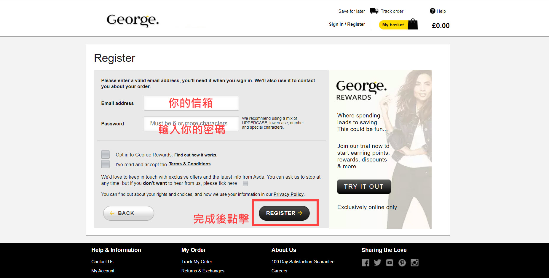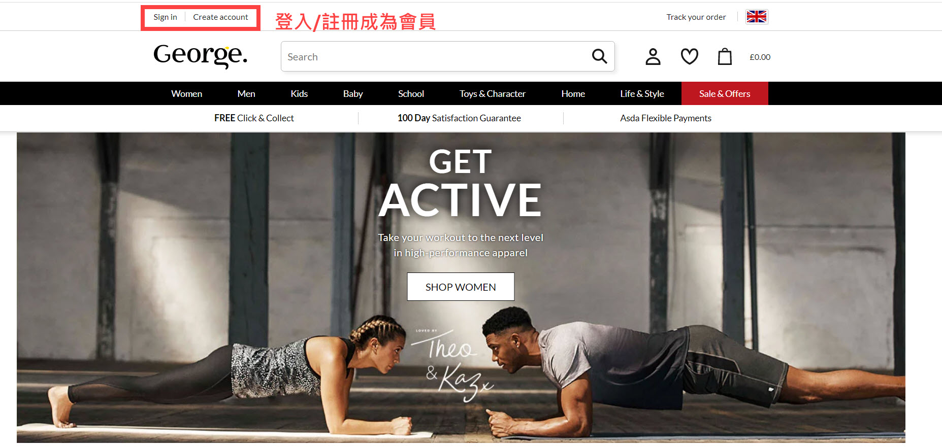 Step2. 到英國George官網,並且註冊/登入會員(可參照下圖申辦會員)