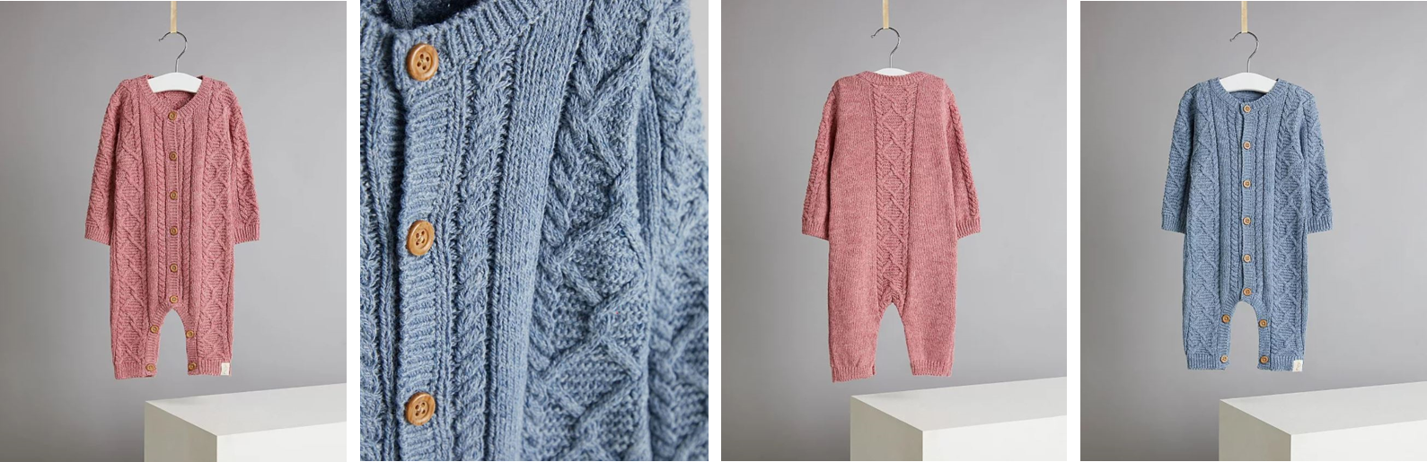 這款也是一看就融化的包屁衣呀!看似像今年最流行的針織麻花款,但其實是柔軟的棉材質,讓寶寶穿在身上也不會感到不舒服~而且有粉嫩的天藍色和粉色可以選擇呢!一件只要£14(約台幣560元),是可愛又超值的甜甜價呀!