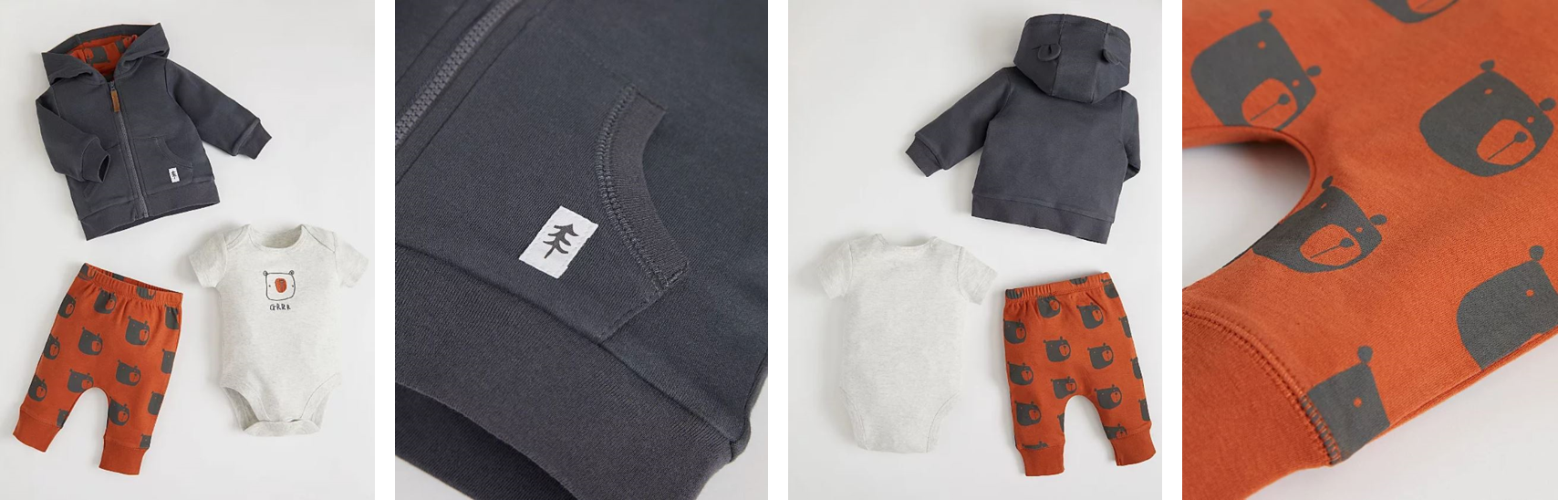 這個組合是一個三件的套組,包含外套、包屁衣、褲子各一件,材質使用的是柔軟親膚的棉,讓寶貝穿上不刮皮膚,舒適一整天!上面的小熊圖案也是超級Q,光用想像的都要萌翻啦~三件組只要£12(約台幣480元),一件只要160就可以買到呀!