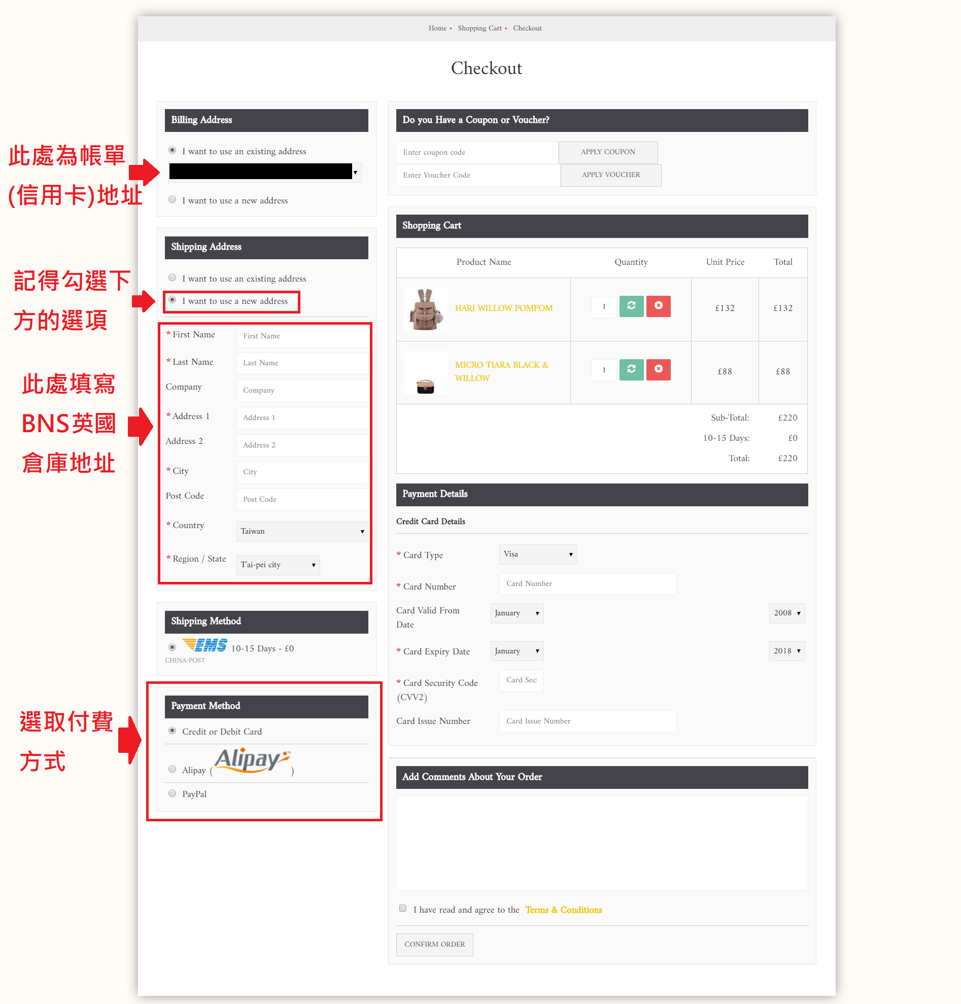 STEP 4.完成購物後,進入購物車(如下圖)確認自己購物清單然後按照Buyandship網站中給的資料填寫空格(如下圖)。