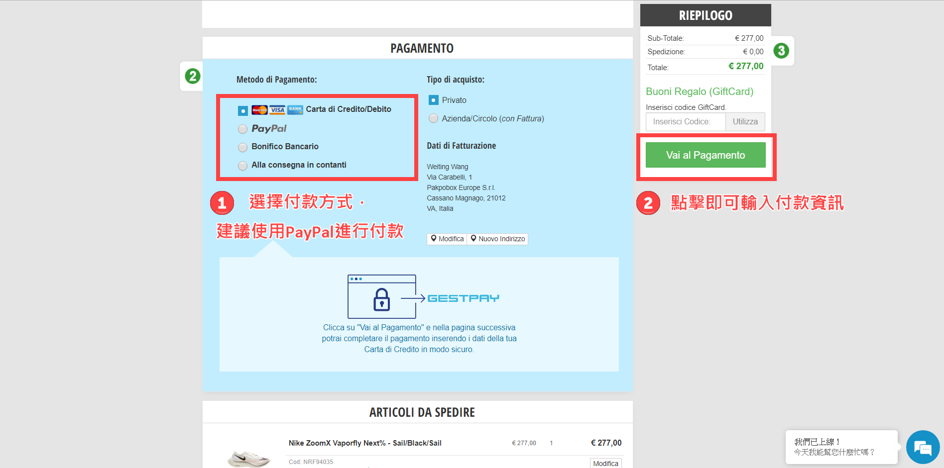 Step5. 輸入信用卡資訊(付款建議使用PayPal付款可大幅降低被砍單機率)