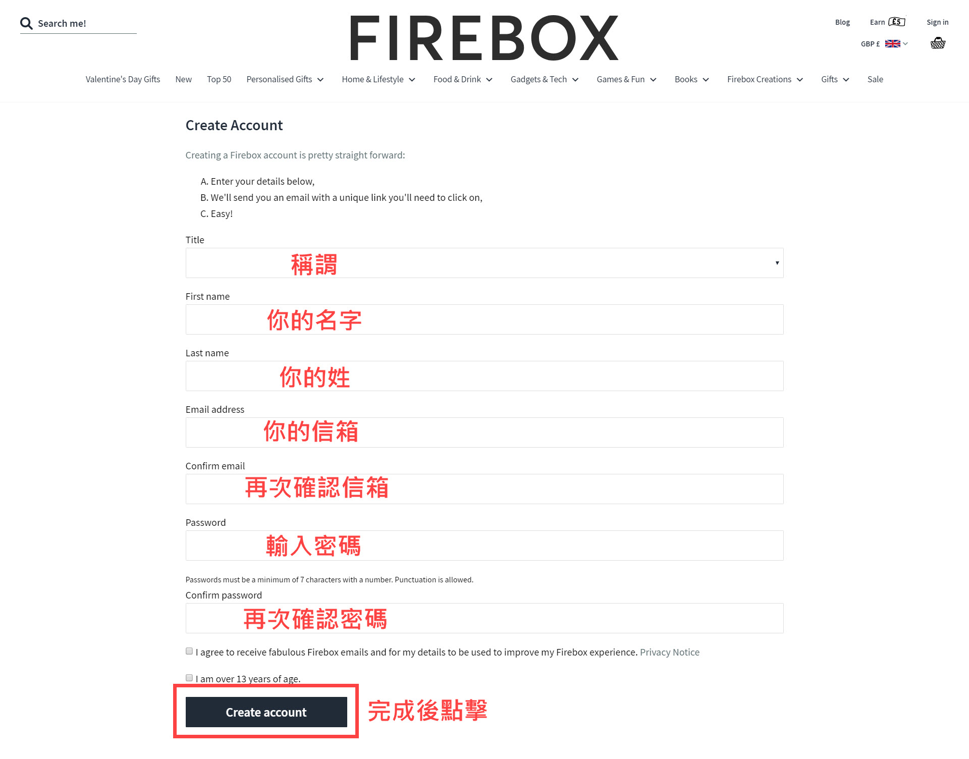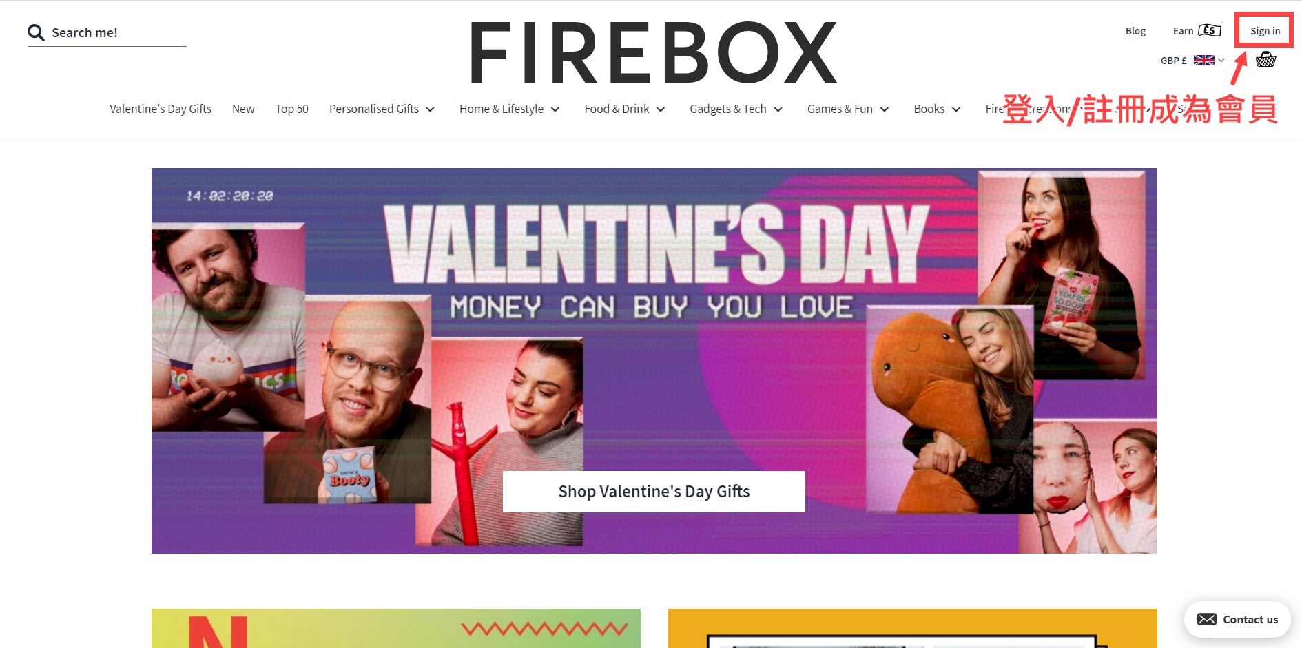 Step2. 到英國FIREBOX官網並且註冊/登入會員(可參照下圖申辦會員)