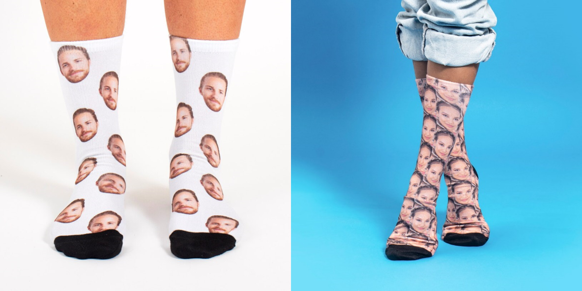 🔼 如果你對自己的一張帥臉深深無法自拔的自戀症狀,那入手一雙上面印滿自己帥臉的襪子應該很可以吧😜 穿在腳上隨時想要欣賞自己的帥臉輕輕鬆鬆啦!如果覺得踩在自己臉上不好,那印滿小人的照片好像也可以😂
