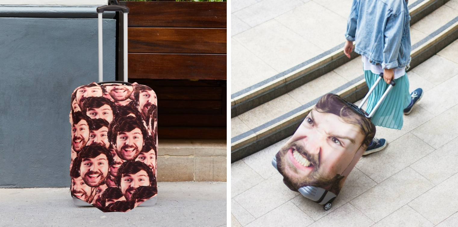 🔼 出國到機場最怕在行李轉盤上望眼欲穿還是找不到自己的行李箱啦!那就客製化一個屬於你自己的行李箱套吧~~想要印滿自己的臉或是只印上一個大臉都可以,放一張你兇狠狠的臉,相信小偷看到凶神惡煞的眼神,絕對換別的下手目標啦!