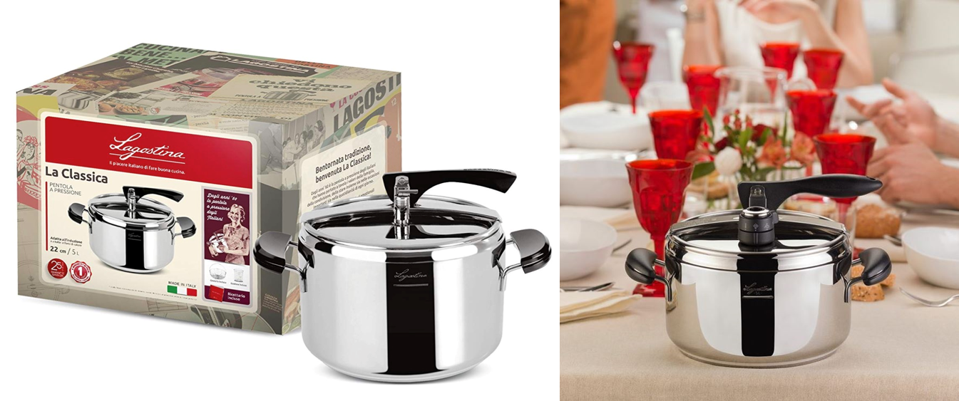 在這小編要介紹一款來自義大利的樂鍋史蒂娜(Lagostina)高壓鍋,它被稱為「世界上最安全的高壓鍋」,誕生50年以來,在全球範圍無一例安全事故!鍋的品質一流,拋光亮面和整體外觀設計,美觀優雅,在開合、控壓和降壓方式上,Lagostina的壓力鍋絕對有明顯的優勢,360度任意對位,是傳統的壓力鍋所不能及的!