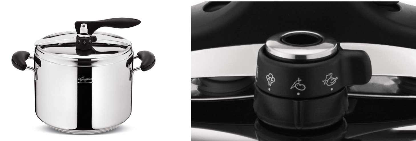 大家都知道,傳統壓力鍋的鍋蓋和鍋體之間讓金屬片咬合真的不容易。而Lagostina全球獨特的波浪形軟鋼壓合蓋,可以很好避免蓋子飛起。它獨特的壓力設計,模仿的是飛機艙門的原理,可以由內向外牢牢封住壓力。