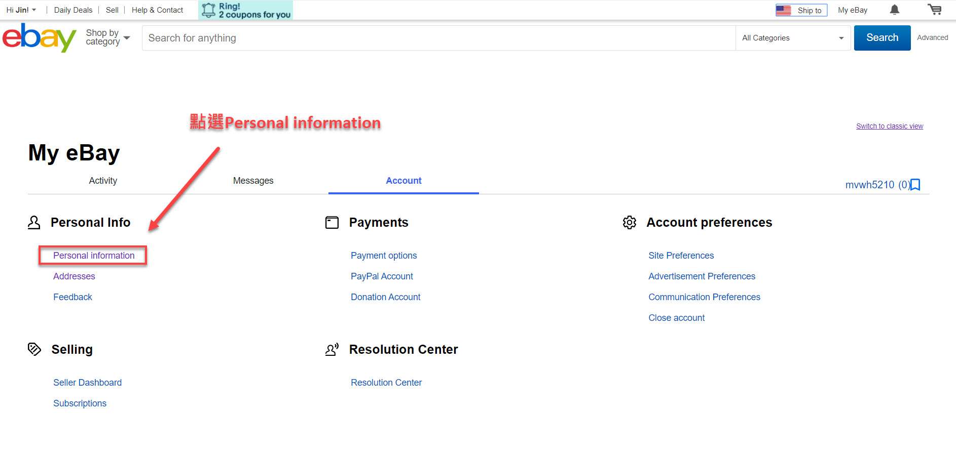 Step4.找到左方畫面中Personal information字樣,進入帳號資料設定