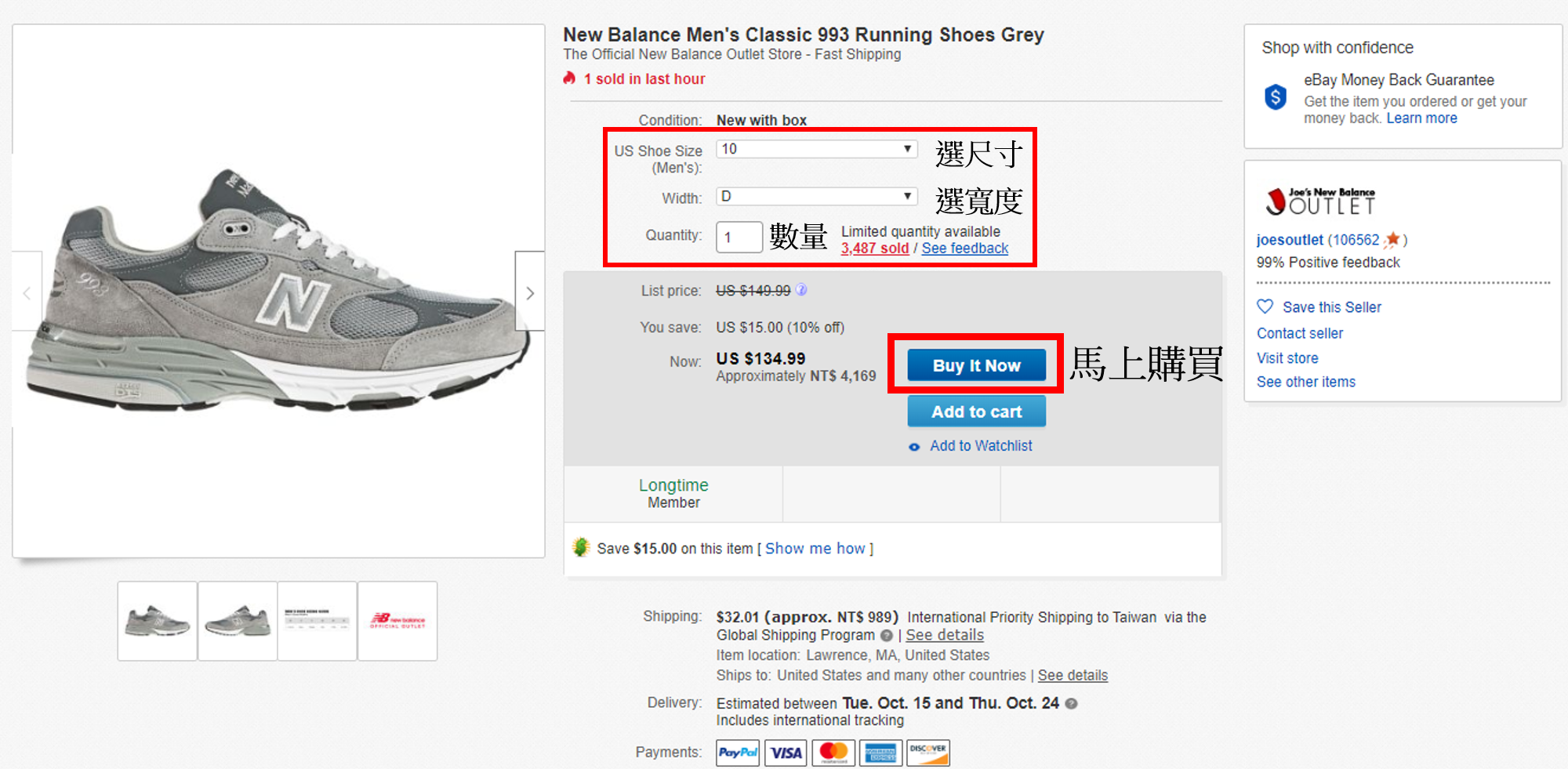 美國 eBay Joe’s New Balance專門店消費者佳評如潮