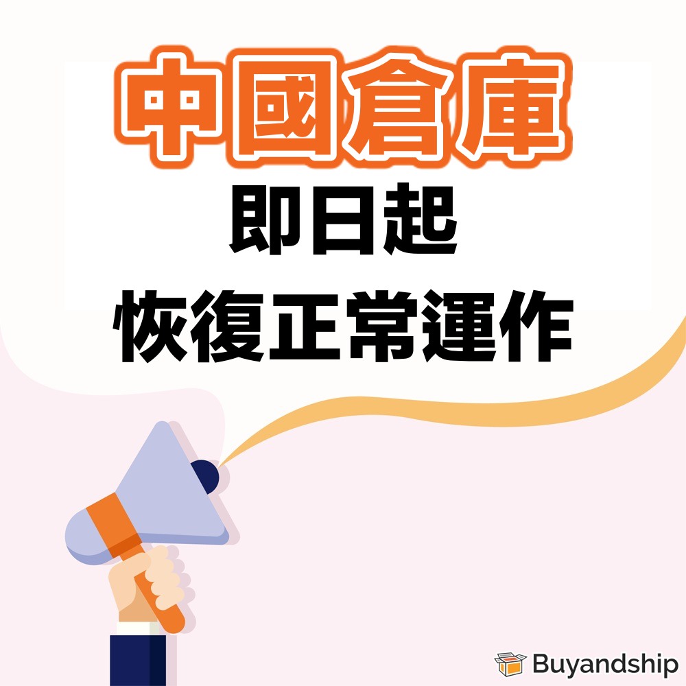 中國倉庫即日起恢復正常出、入庫處理,倉庫地址已於網站上公開。