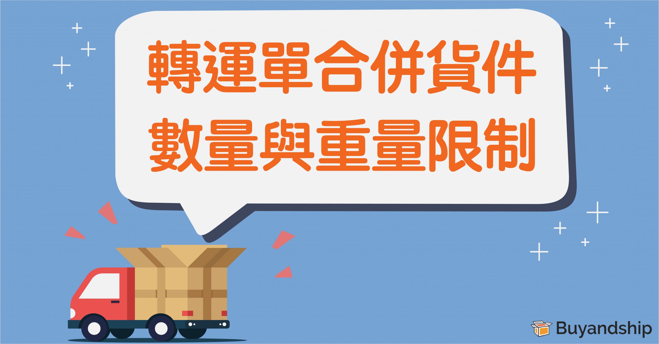 - 合併兩件以上貨件,每張轉運單最高合併件數限 10 件,合併重量上限為 22 磅。