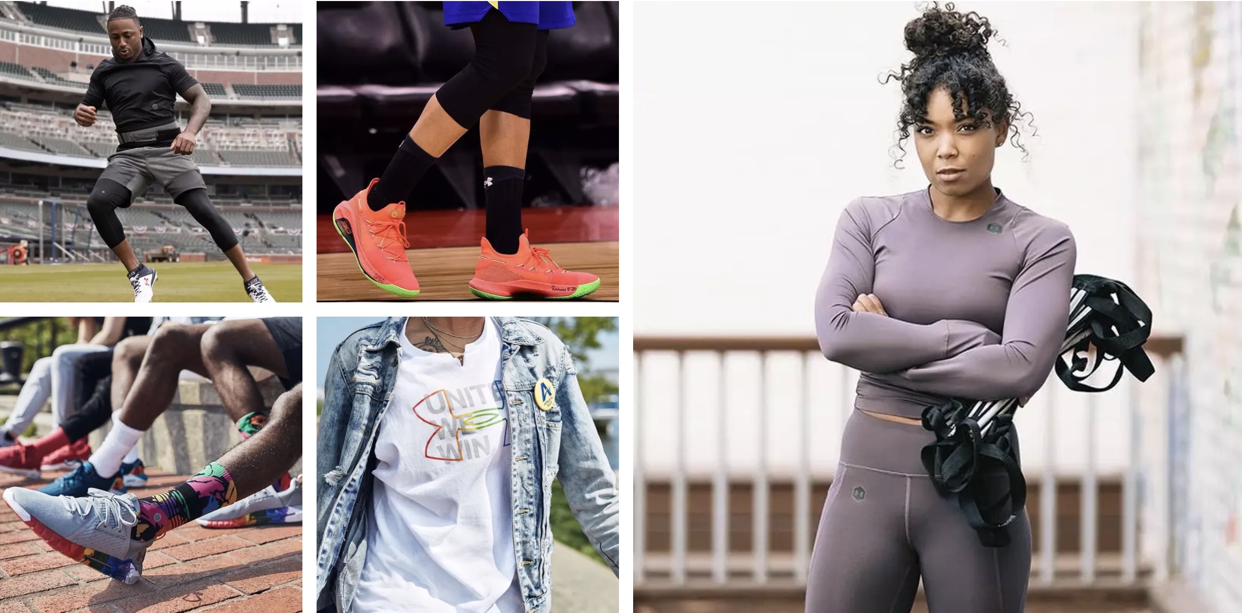 來自美國的第二大運動品牌Under Armour,縮寫UA,主要販售運動服、配件及休閒服裝。凱文・普朗克於1996年創建UA,他原本是馬里蘭大學美式足球隊的隊長,而美式足球球衣的排汗問題一直是他的苦惱,所以他親自設計並委託廠商製造。除了美式足球球員之外,普朗克後來也把衣服給籃球球員、曲棍球球員試穿,他希望設計一些更適合運動員或者愛好運動者穿著的運動衣。Under Armour於2014年成為北美第二大運動品牌,超越了成立已經66年的愛迪達,更簽下2015年美國職業籃球(NBA)年度最有價值球員(MVP) 史蒂芬‧柯瑞。2019年,Under Armour更將取代Majestic,成為美國職棒大聯盟的球衣供應商。強調運動精神、拼搏精神以吸引熱血年輕人,UA之所以能打敗老牌的原因即在於其在12至25歲人們之中掀起的專業運動熱潮,比起華麗、休閒的設計,UA更強調專業運動用品的定位,而在逐漸重視運動的現今,也只有這樣的高規格專業度得以符合消費者的需求。由於專注於改善產品舒適度,UA 一下子在功能性運動服市場便佔據了近 80% 。UA 在運動服飾的製作中秉持著「棉是我們的敵人」的口號,引領了以吸汗滌綸為材料的體育裝備潮流,直到今日許多其他運動品牌推出的專業服飾更是多隨著UA使用此一材質,他們不迎合消費需求,而是創造了消費需求,這也令其達到更高階段的地位。