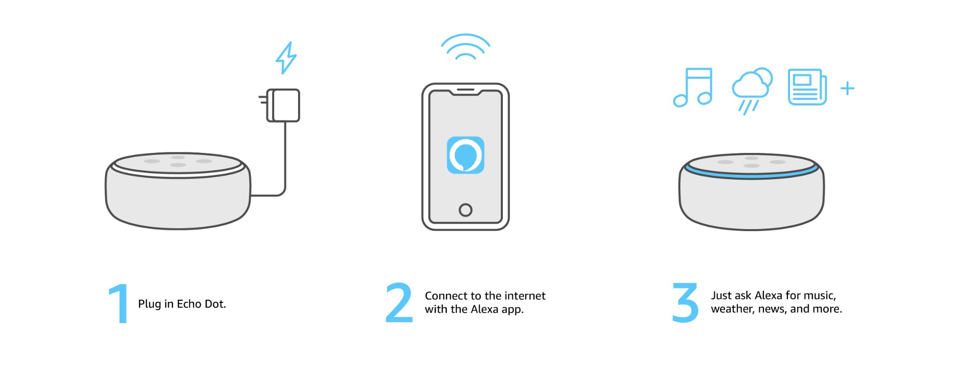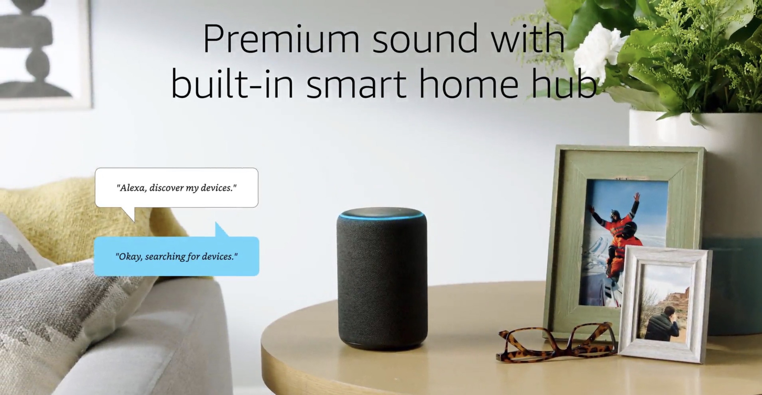Amazon Echo是一款搭載Amazon Alexia的智慧型喇叭,系列商品包含入門款的Dot、標準版Echo。通過Alexa語音助手,用戶通過簡單的語音指令,就可以播放音樂、查詢資訊,甚至控制各種智慧型家居裝置。能支援超多第三方裝置,WeMo, Philips Hue, Samsung SmartThings, Wink, Insteon 等等,幫忙開關電燈、按鈕等等,也能連上 Google Calender。Echo 內建的七個麥克風,可以接收房間裡的所有聲音,還會透過雲端運算,辨認你的聲音、用字和喜好。語音辨識的技術,也讓它能有驚人表現,就算正在播放音樂,Echo 也能辨識聲音說什麼,以及從哪邊來。