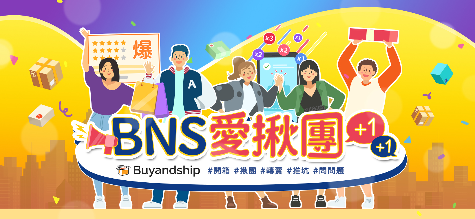 開箱你的 Buyandship Plus 戰利品,分享到臉書BNS愛揪團,限時優惠送百元運費積分,馬上跟!!