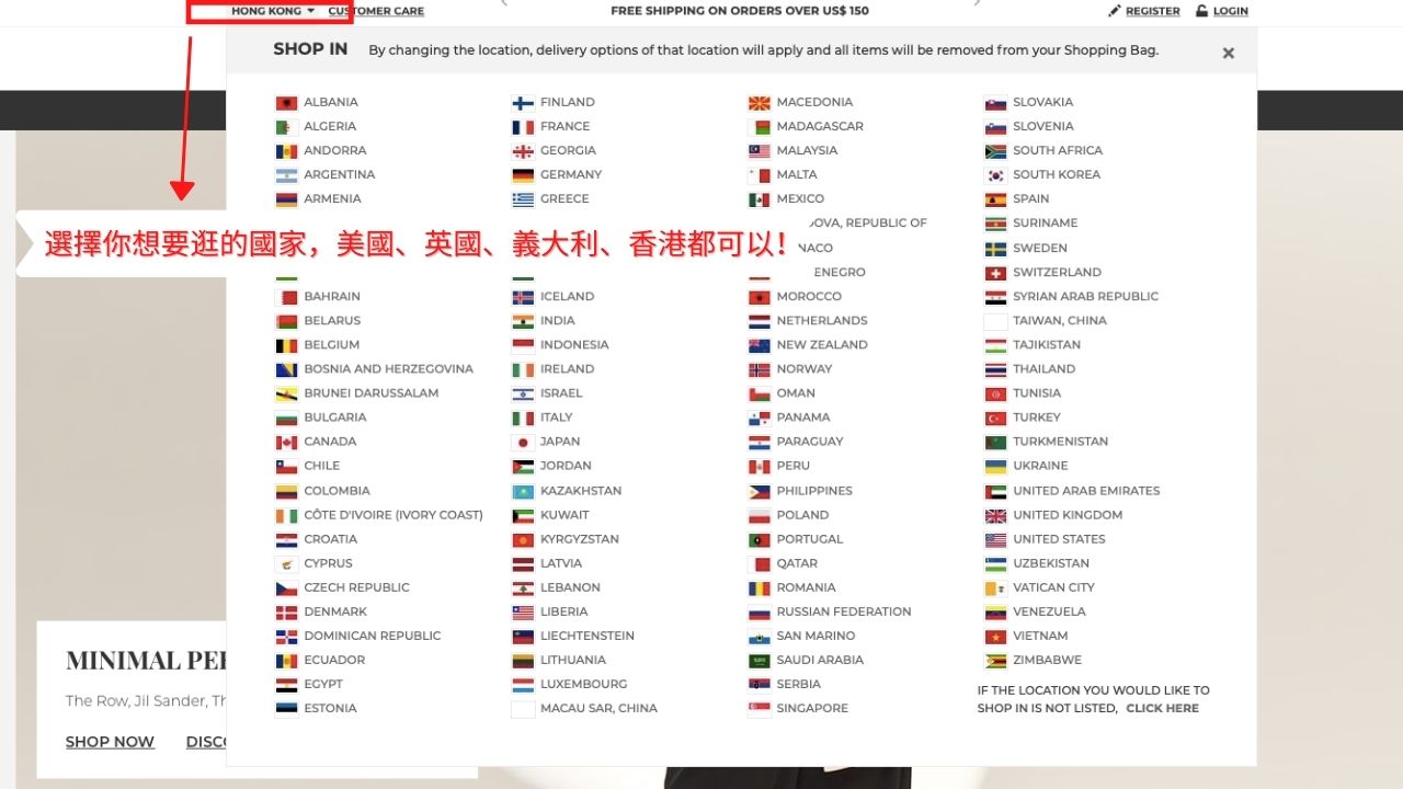 這時請大家發揮實驗精神,到網頁左上角(如下圖),分別選擇並比較看看寄送到「Hong Kong(香港)」、「Italy (義大利)」、「United Kingdom(英國)」、「Canada (加拿大)」、「Australia(澳洲)」或是「United States(美國)」的價格&運費差距。