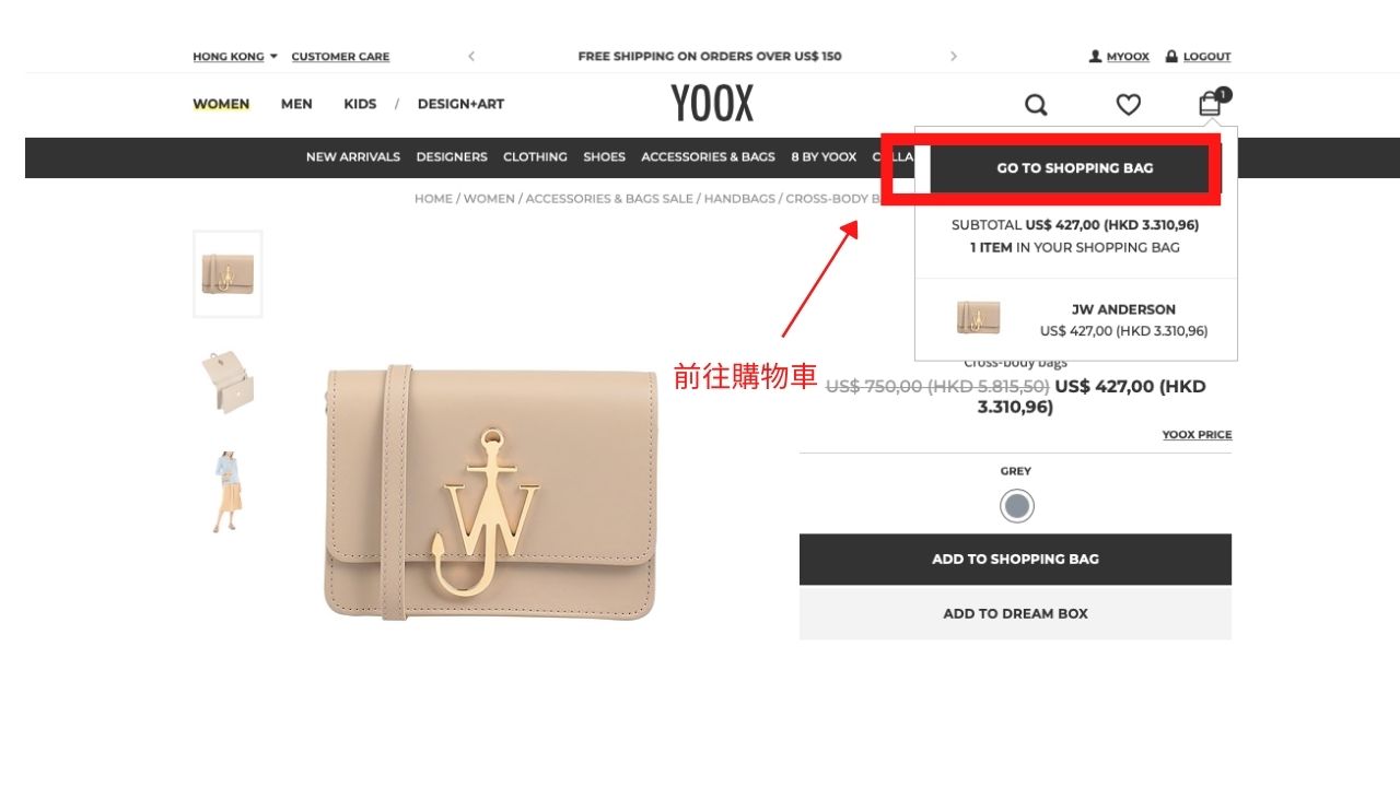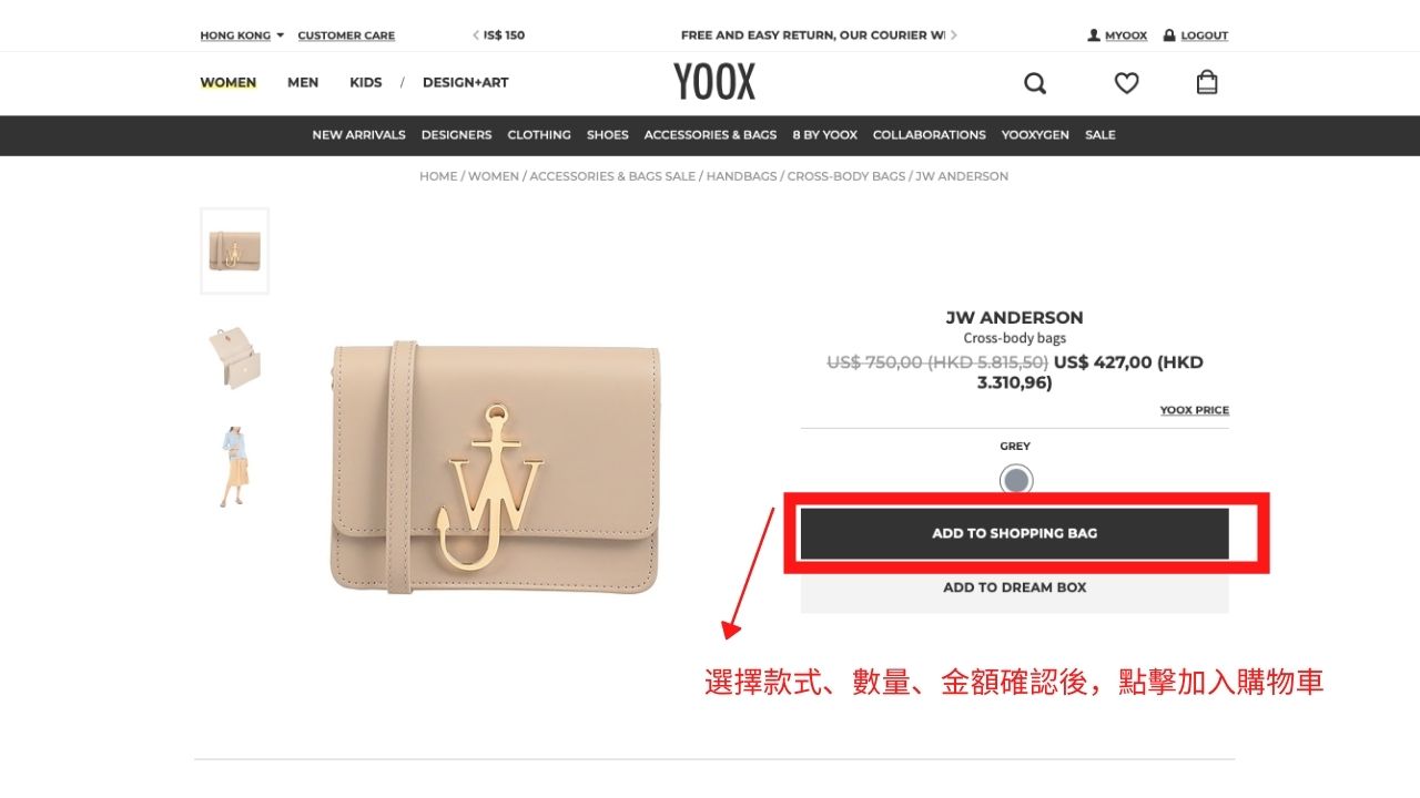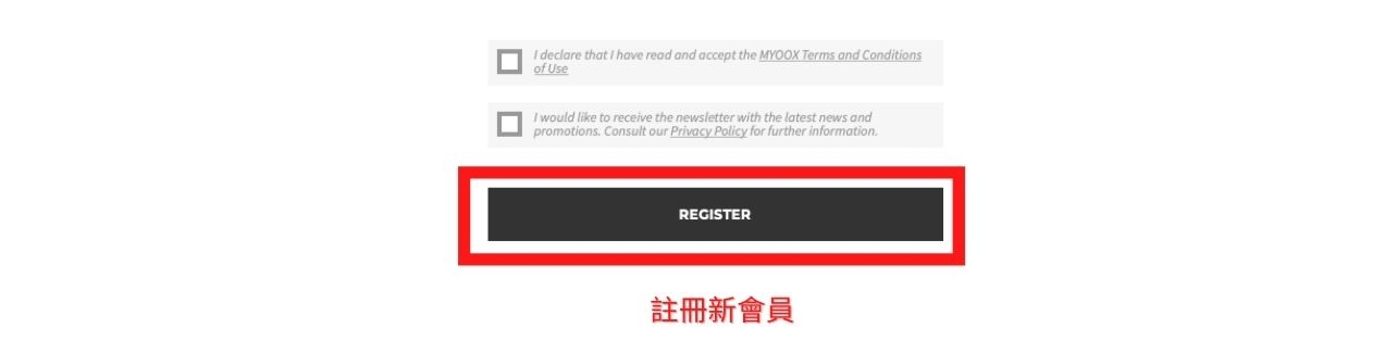 Step 2 . 到YOOX官網,之後註冊/登入會員 (可參照下圖申辦會員)