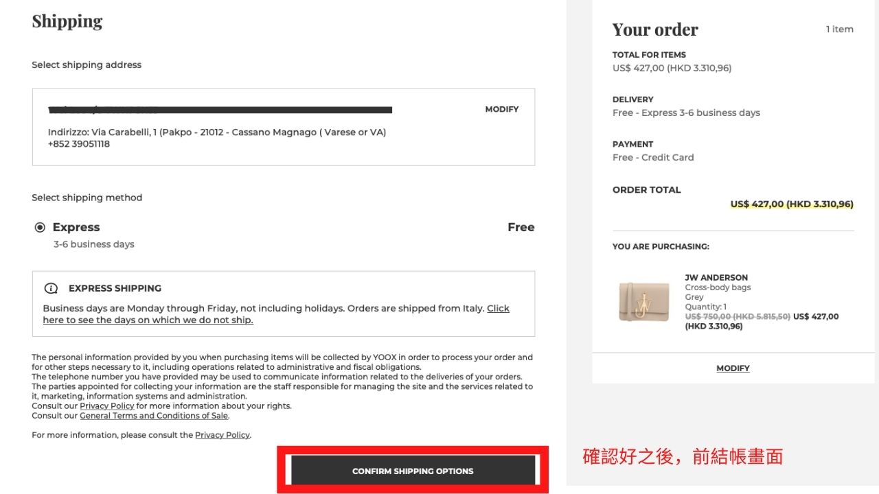 這邊小編要特別提醒大家, 在 YOOX 網站上購物,商品可能會從不同國家寄出,價格以及運費也可能會因此產生變化,唯一不變的是寄到台灣永遠很貴!
