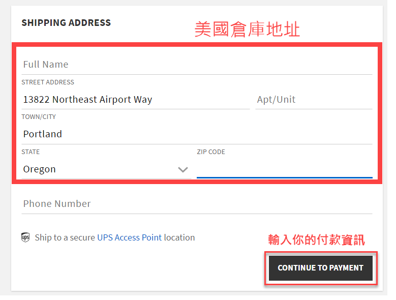 Step5. 按照Buyandship網站給的資料填寫空格