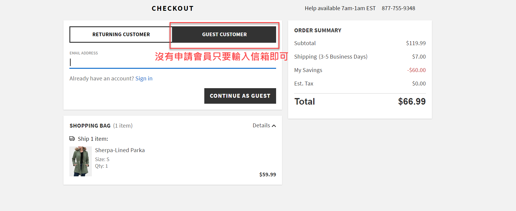 Step3. 進入購物車頁面準備結帳,若訂單超過50美元美國免運費!